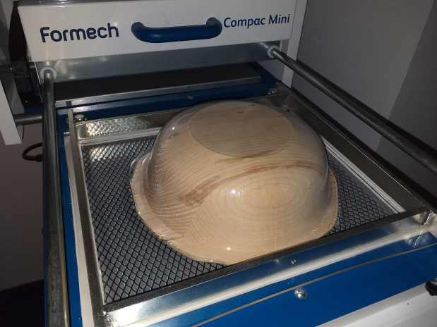 As you can see in this picture. The natural wood gives some mark on the vacuum form. You can clearly see the annual growth rings of the wood.
