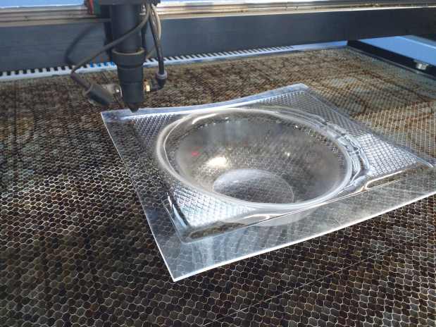 Vacuum form of a 3mm thick media ideally PET , but here Plexiglas. It has to be translucent to let the light go through.