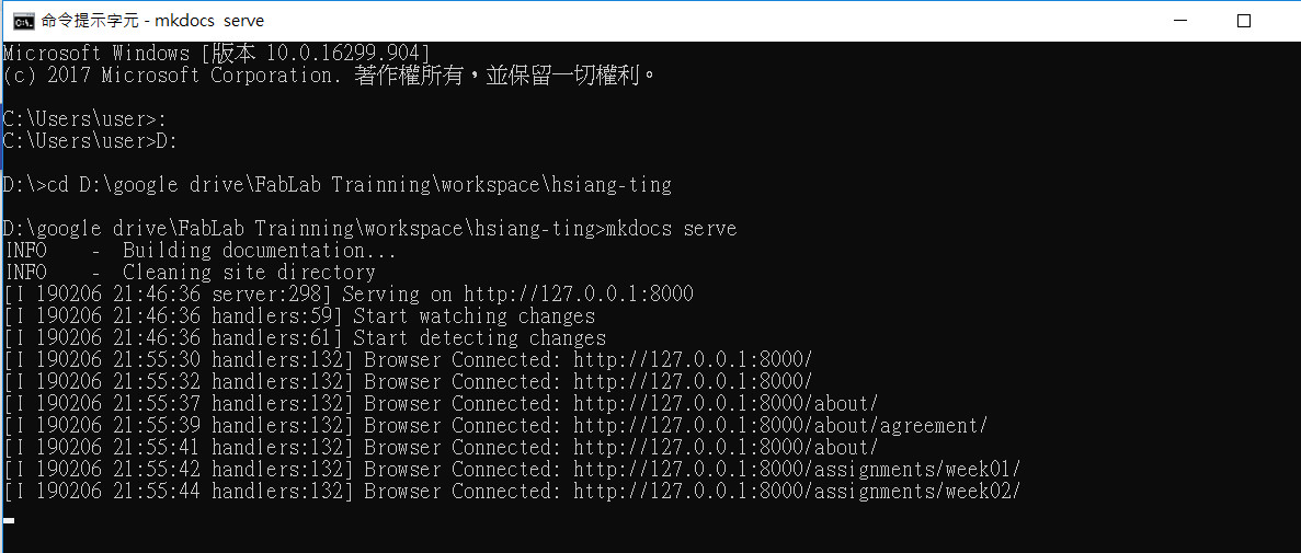 I then used Brackets and Mkdocs to make changes to my webpage.