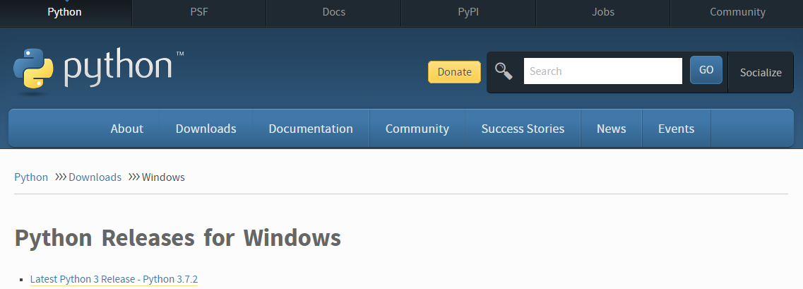 Downloading the Python Releases for Windows , the news version is 3.7.2