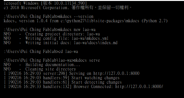Build a site by MkDocs on Windows 10¶