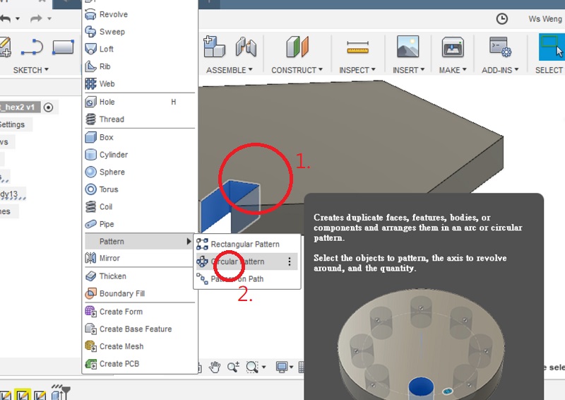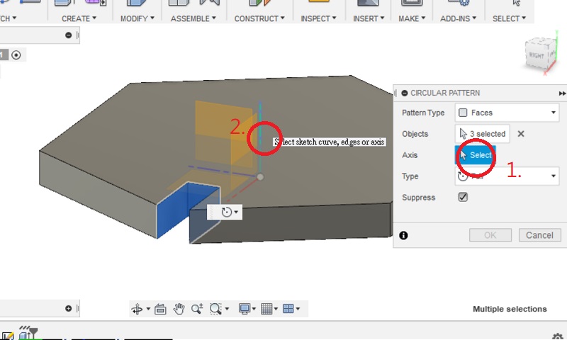 Select axis to make a circular pattern.
