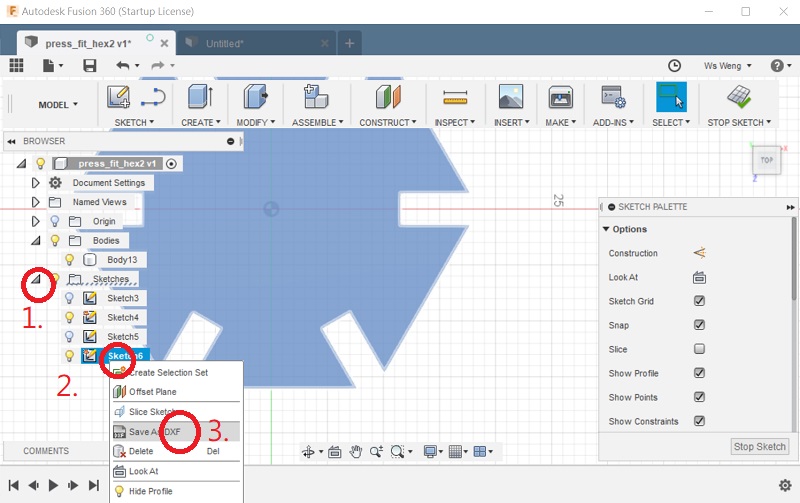 Save the new sketch as DXF file.