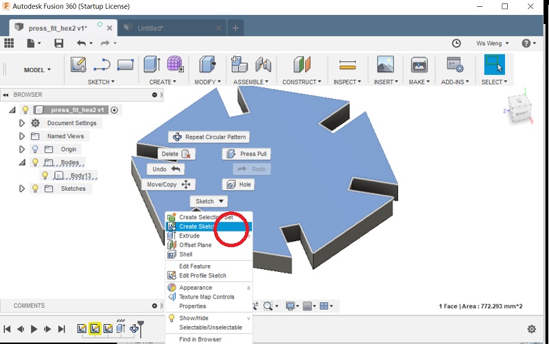 Make a new sketch of the shape that will be cut.
