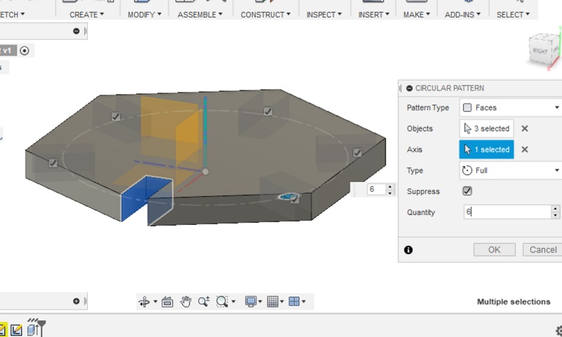 Choose the 3 surface of notches to make a circular pattern.