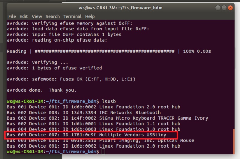Then I try arduino to be an isp. After isp program for arduino loaded by Arduino IDE, my Ubuntu can’t find it. I guess it’s because the name of 3rd-party arduino don’t on the list.