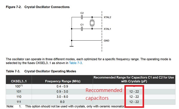 I had check datasheet of attiny 44A for choose of capacitors that crytal need in week 7.