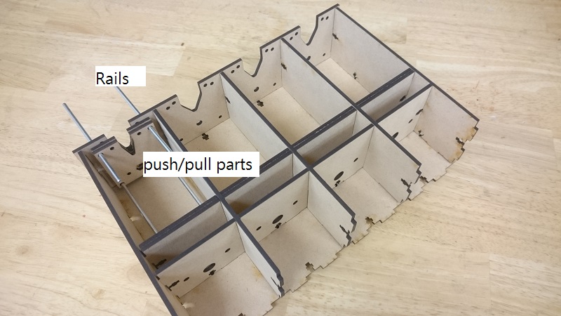 Install four rails and push/pull parts for each channel.