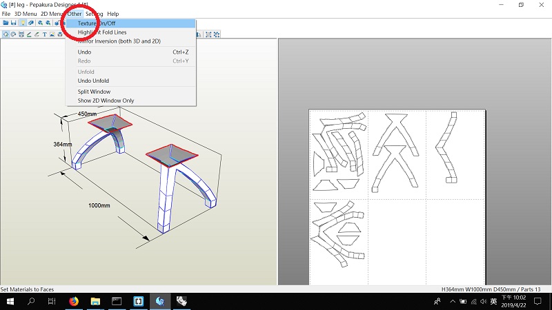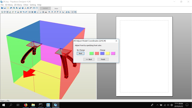 Pull out the leg surface, import to pepakura and select the directions. link here