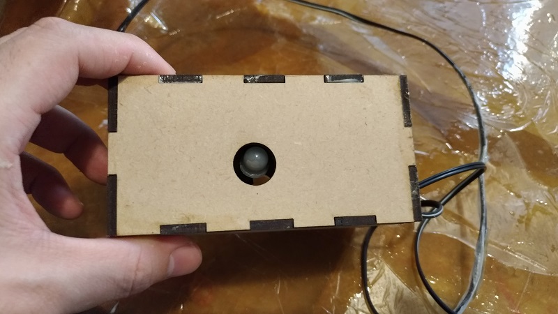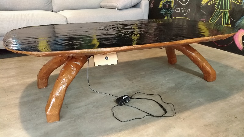 Composite coffee table with a Fablab logo light up when people approaching.¶
