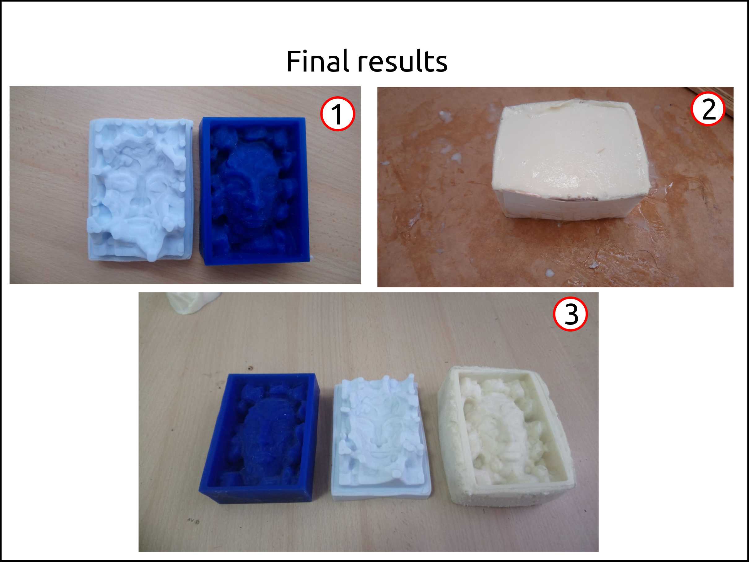 Finally, here we see all of the three stages of doing the molding and casting apart by 3D modeling the thing you want, machining it then doing the negative with rubber and then use epoxy, candle wax concrete or whatever you want.