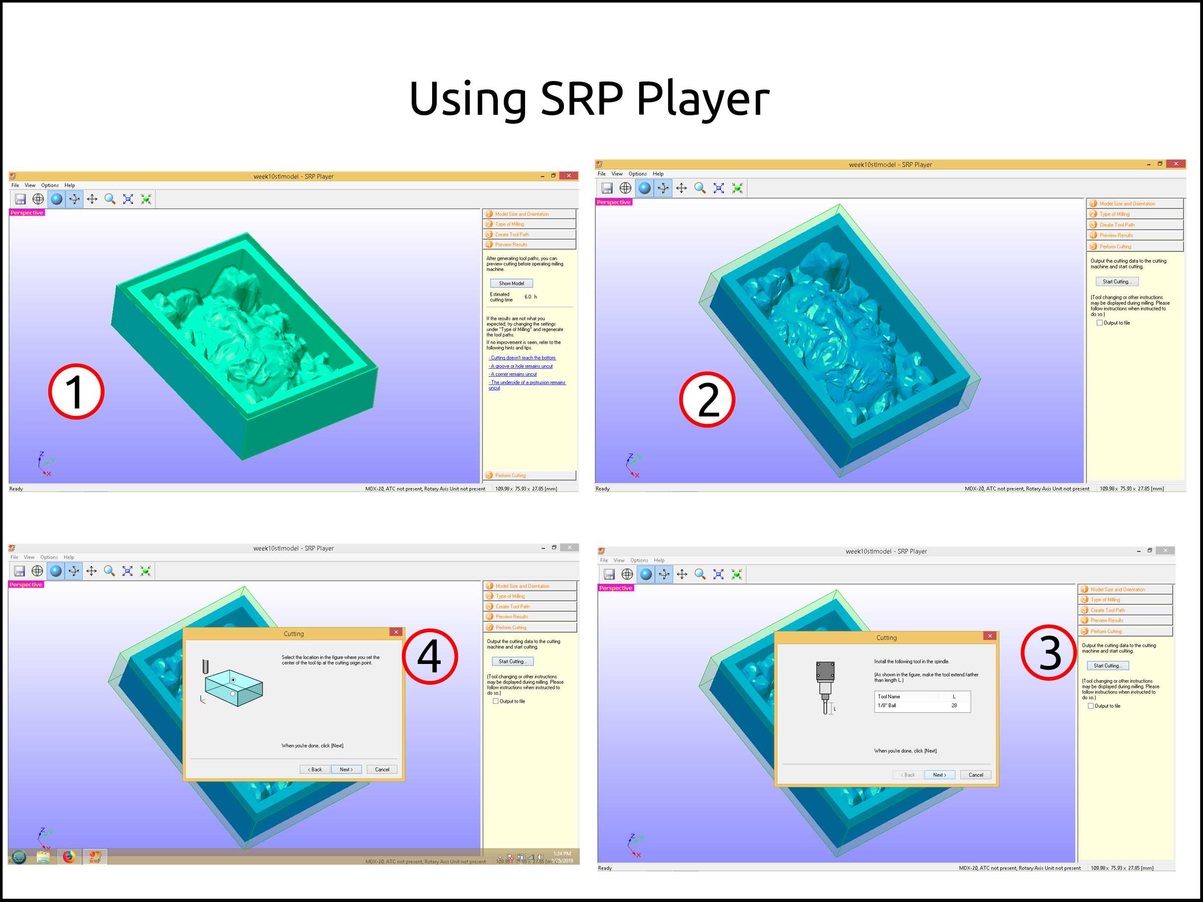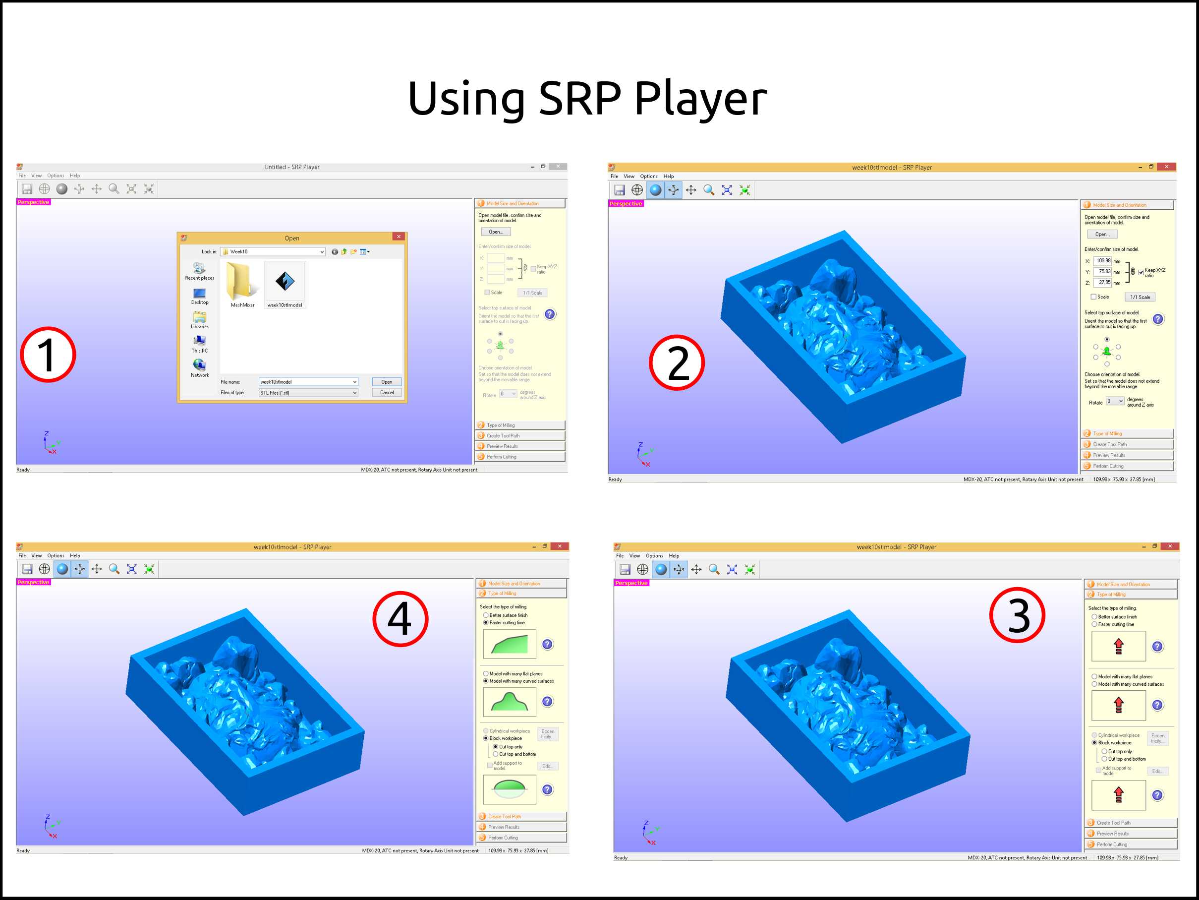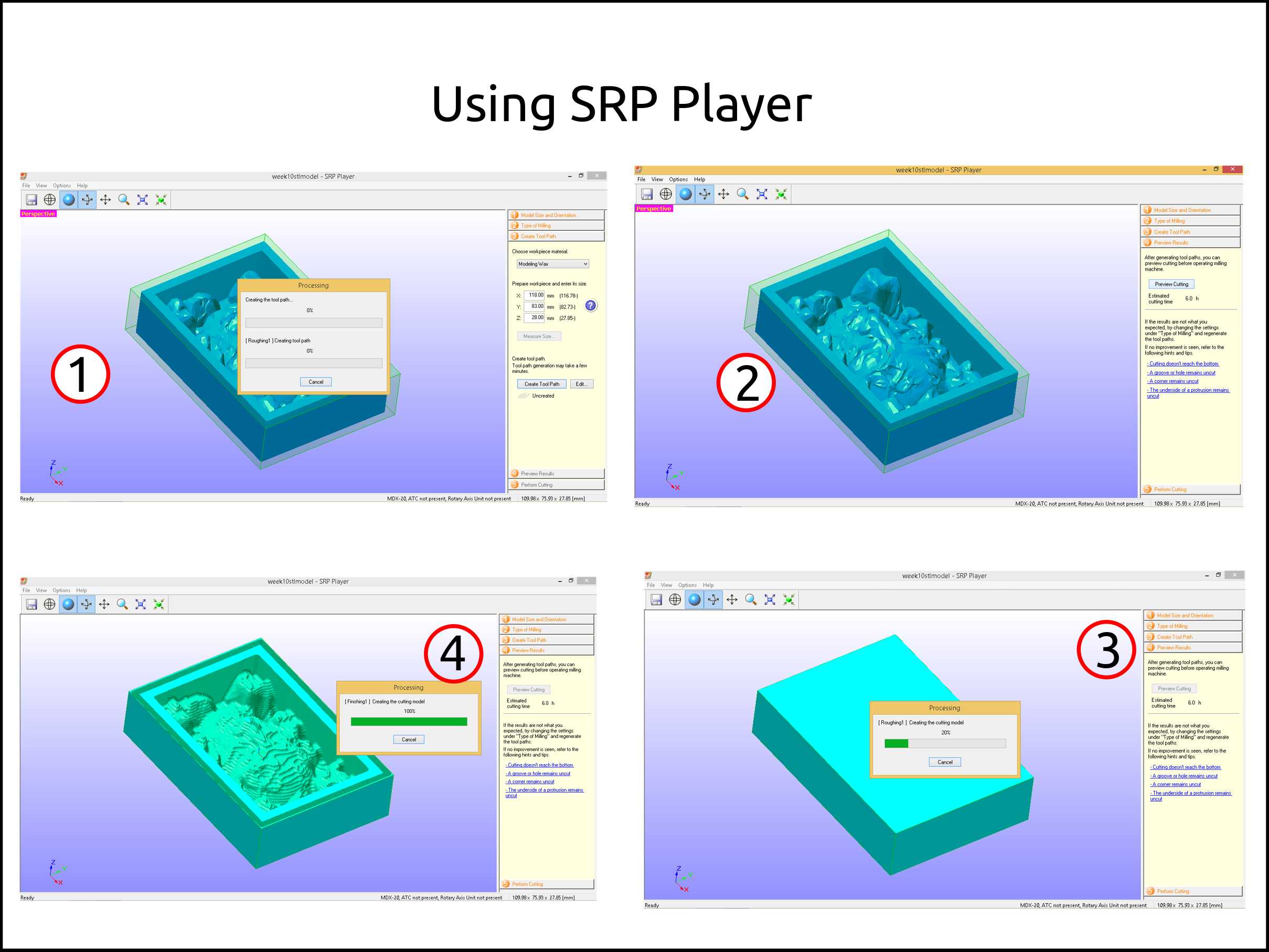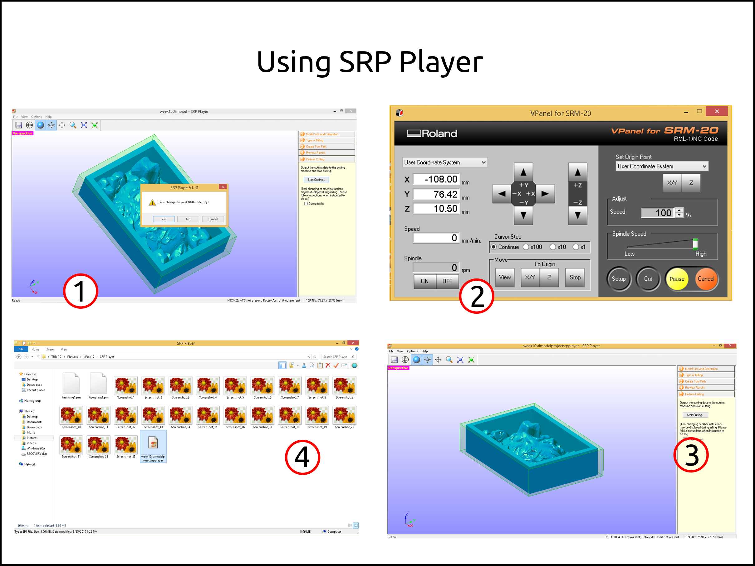 After finishing with the model the next step is to generate the toolpath using the software called SRP Player from Roland. This software we used with the MonoFab CNC and the Modela MDX-20.