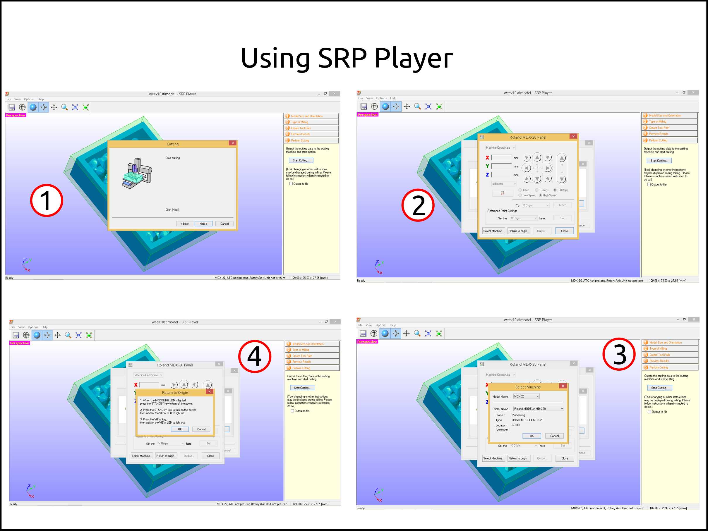 First, try using the SRP Player with the Modela MDX-20. We fail!