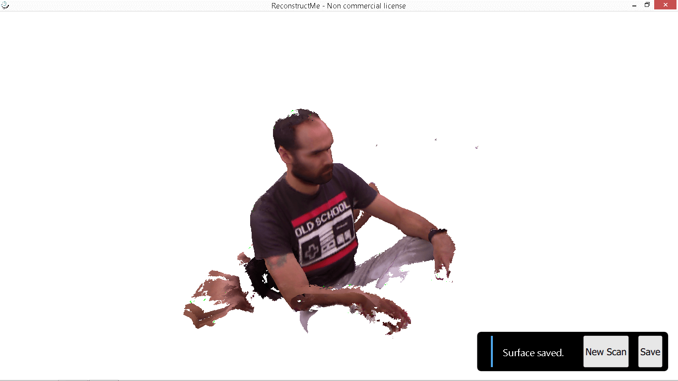 For the assignmet of scanning, i use the kinect for xbox 360 and the free software reconstructme. The step to follow was simple, before set up the device and run de software, select the custom device and press the start button, and the device starts to record. I sat on a swivel chair and rotate slowly 360°, then a colleague finish the record passing the device in a zenital way. The save as a OBJ. file.