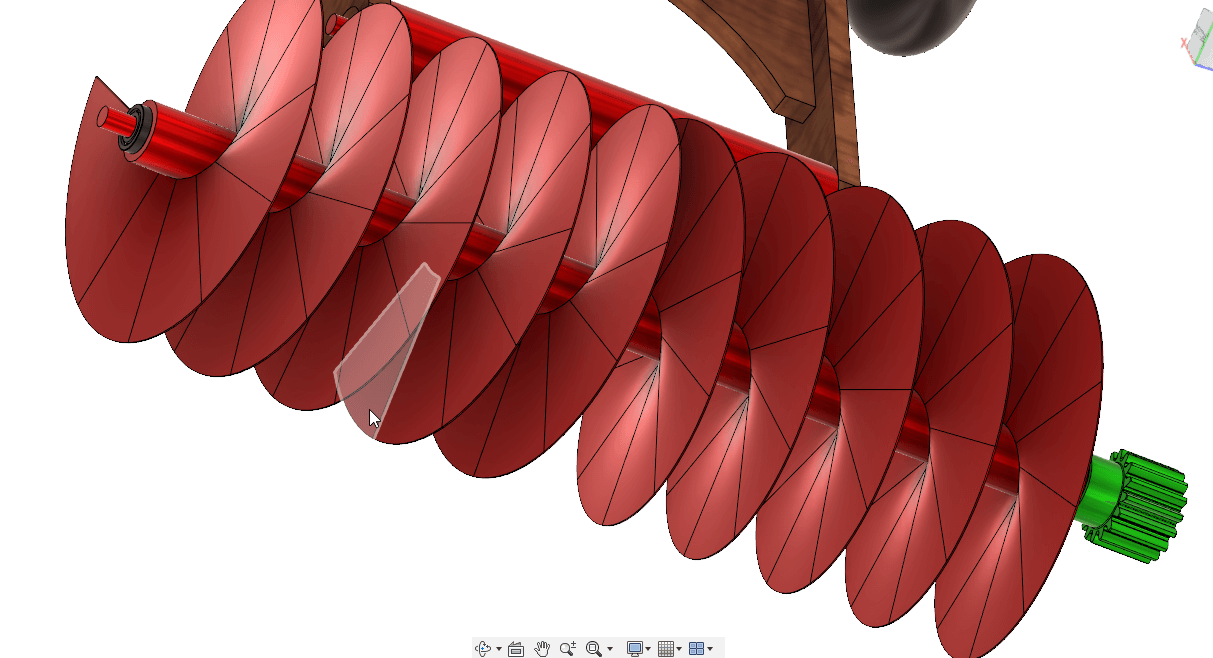 This is a system that uses a double endless screw, takes the material to a conveyor belt and then uses a pair of propellers to return the material. (The design is in progress)