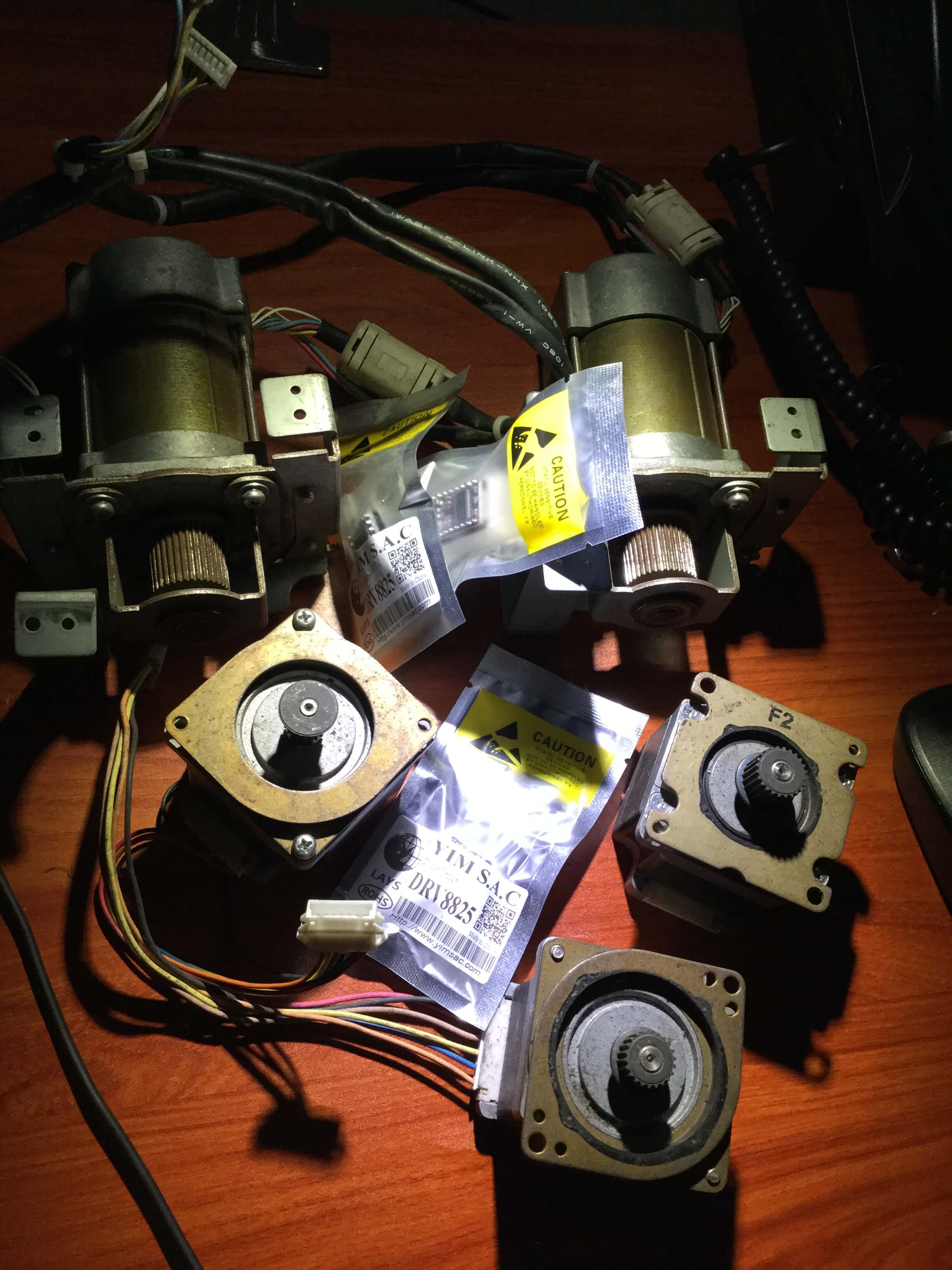 I got some engines in a used goods store, the cost of the DC motors was $ 3.00 each (and there are two) and the step motors also cost $ 3.00 each (and there were 3), plus drivers for the step motors. They cost $ 4 each (and they were 3) so far I have spent $ 27.00.
