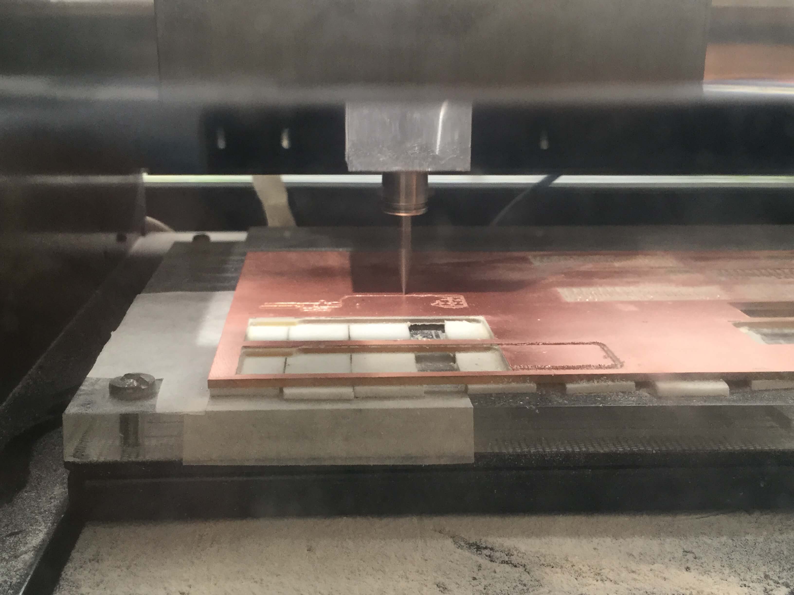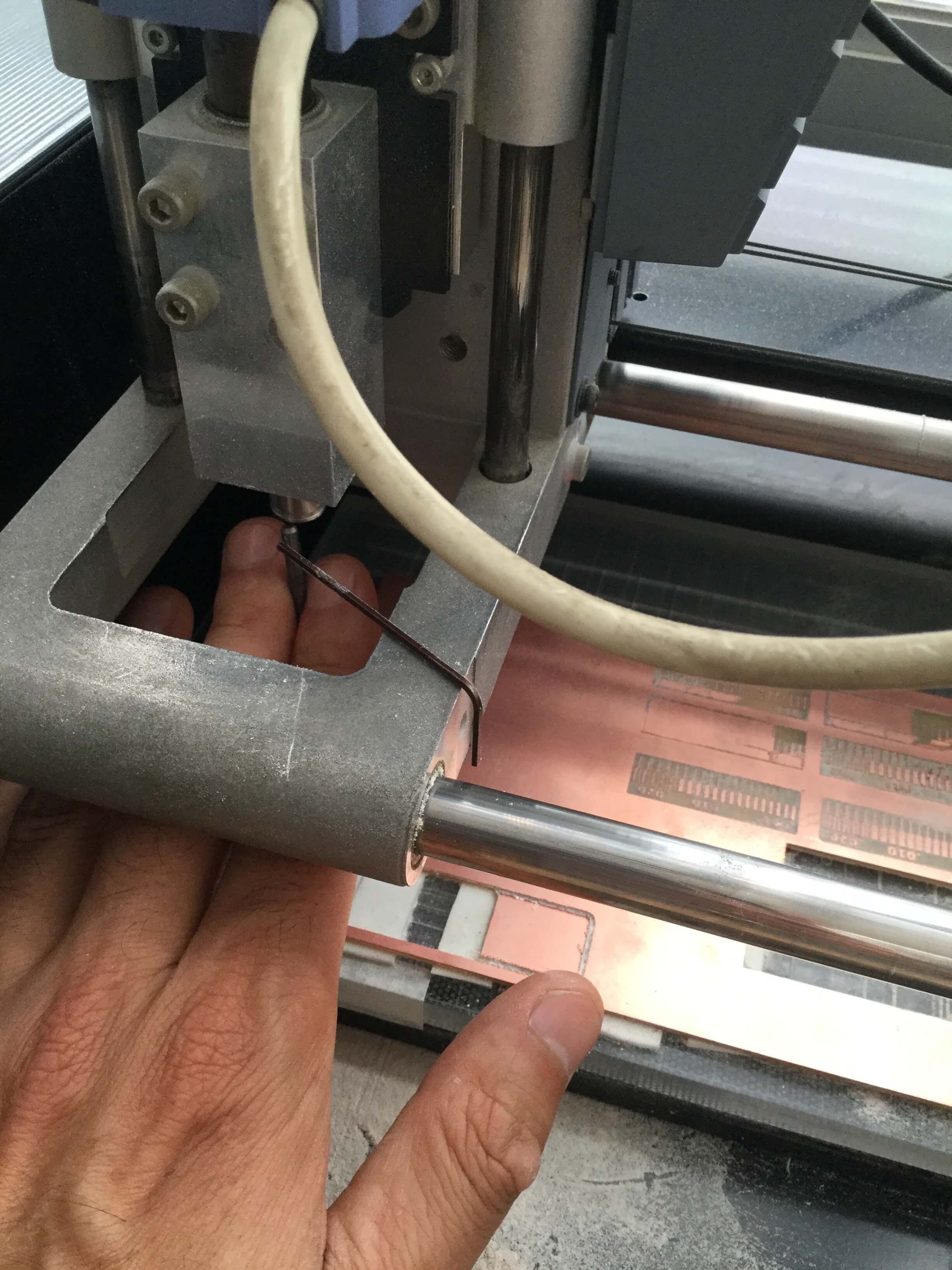 For me, the most critical part is set the milling machine, firt check if the mills are not break, then correctly secure the milling cutter to the machine head. To ensure the PCB on the machine a double-sided tape was used, this practice worked well when the board was small, but when we used a large board, a small inclination was generated causing an uneven cut.