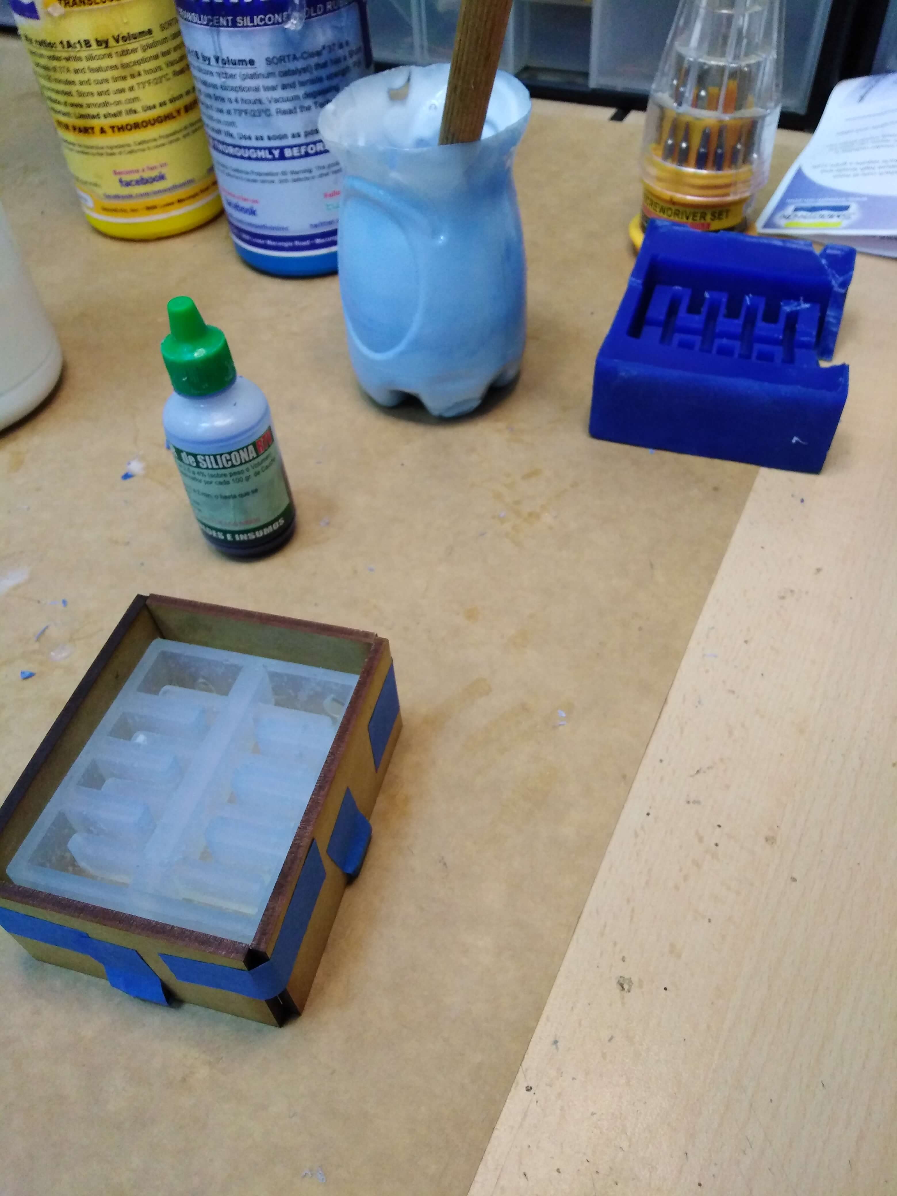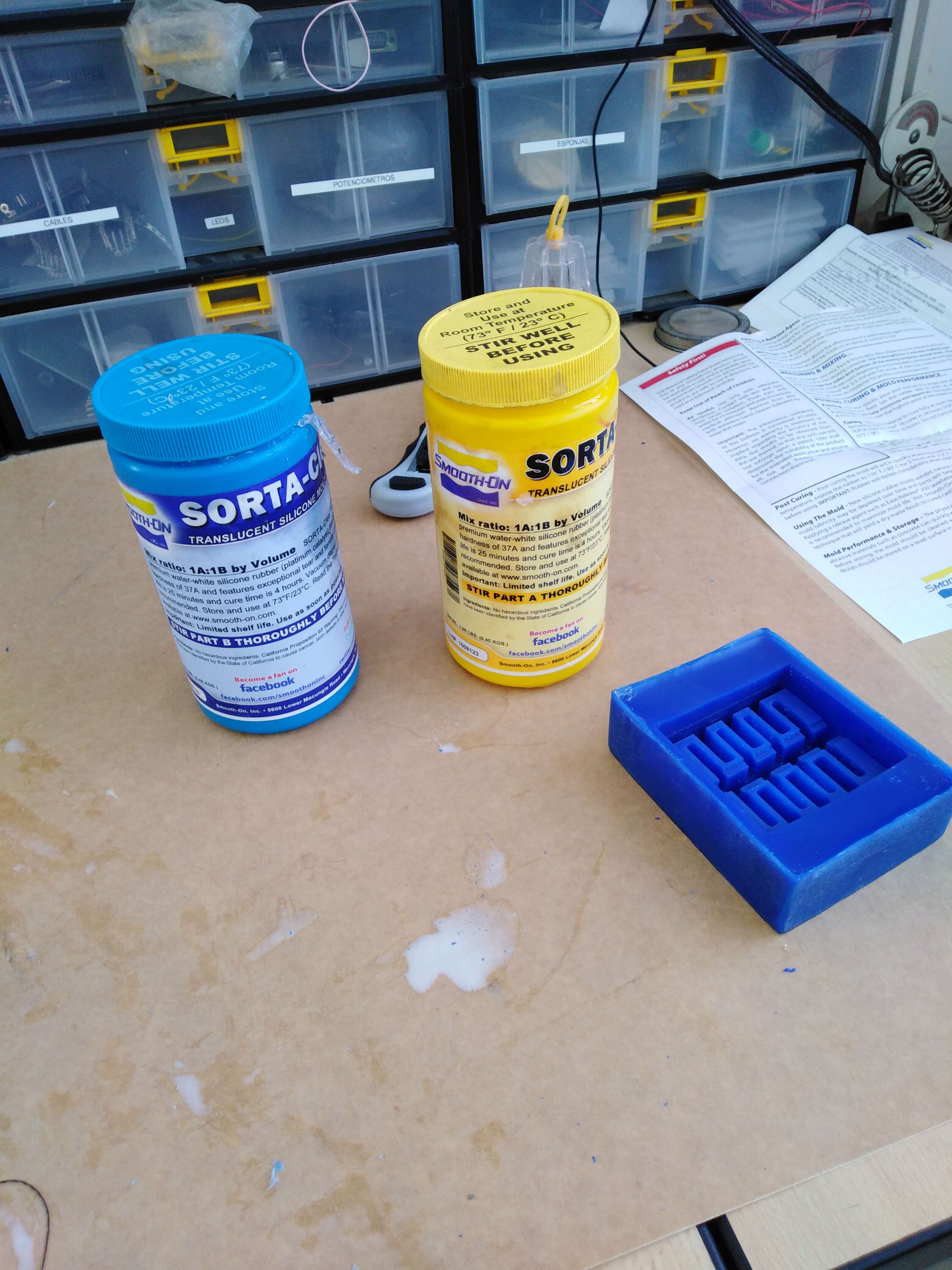 For the mold i use "Sorta Clear 12" silicone elastomer, Two bottles come, A and B, and they are mixed at a ratio of 1: 1. It took a couple of hours to dry.