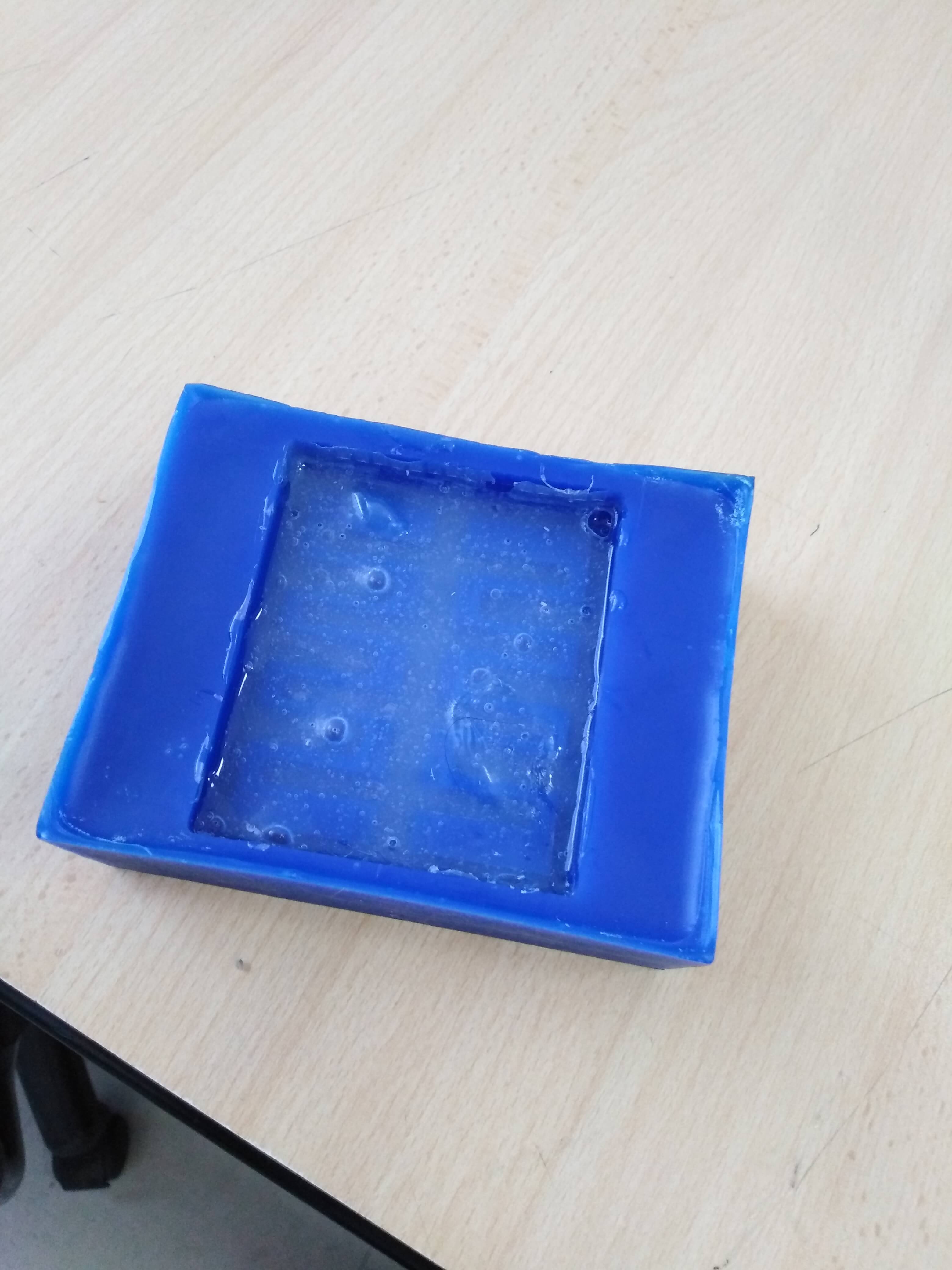 Finally for the "positive" I used another type of silicone, Silicone Rubber RTV6, which requires a catalyst in proportion of 20 drops per 100 grams of silicone. Then mix solution. This took about 6 hours to dry.