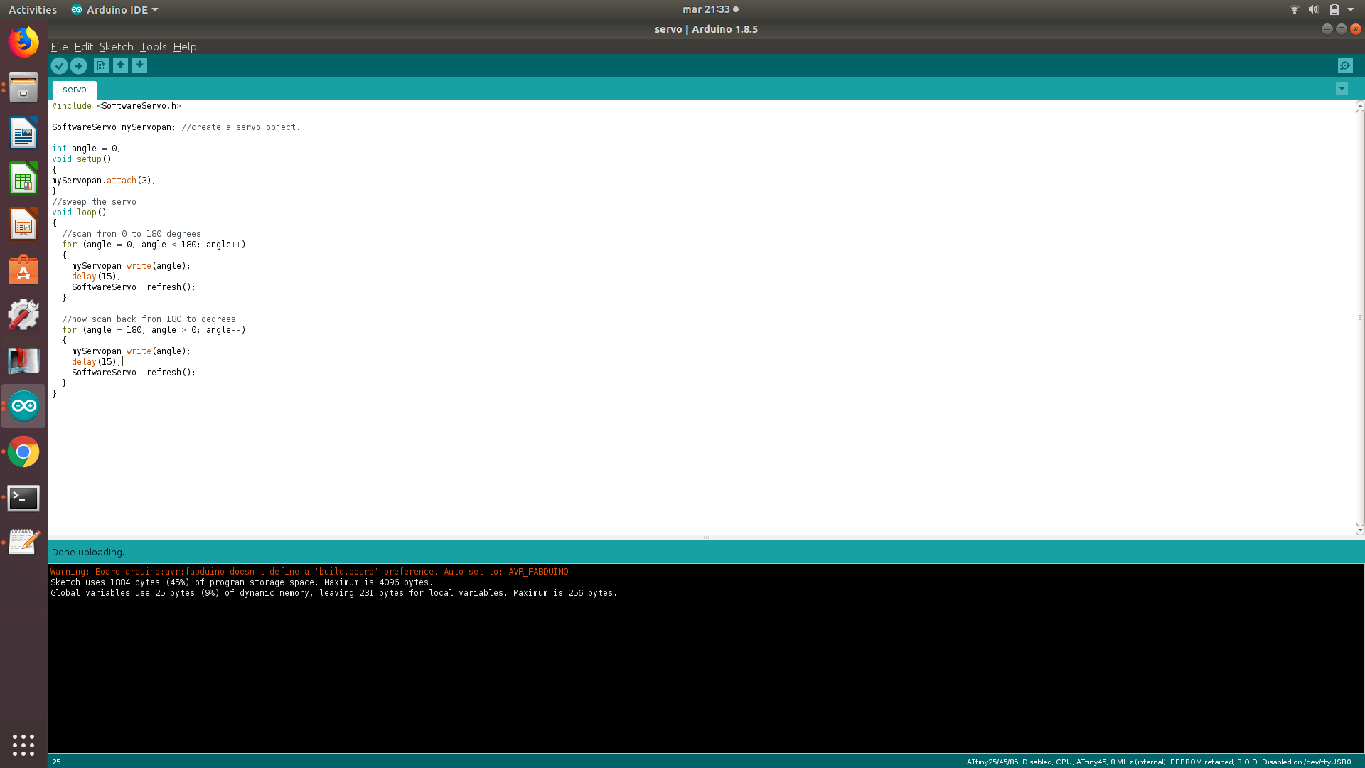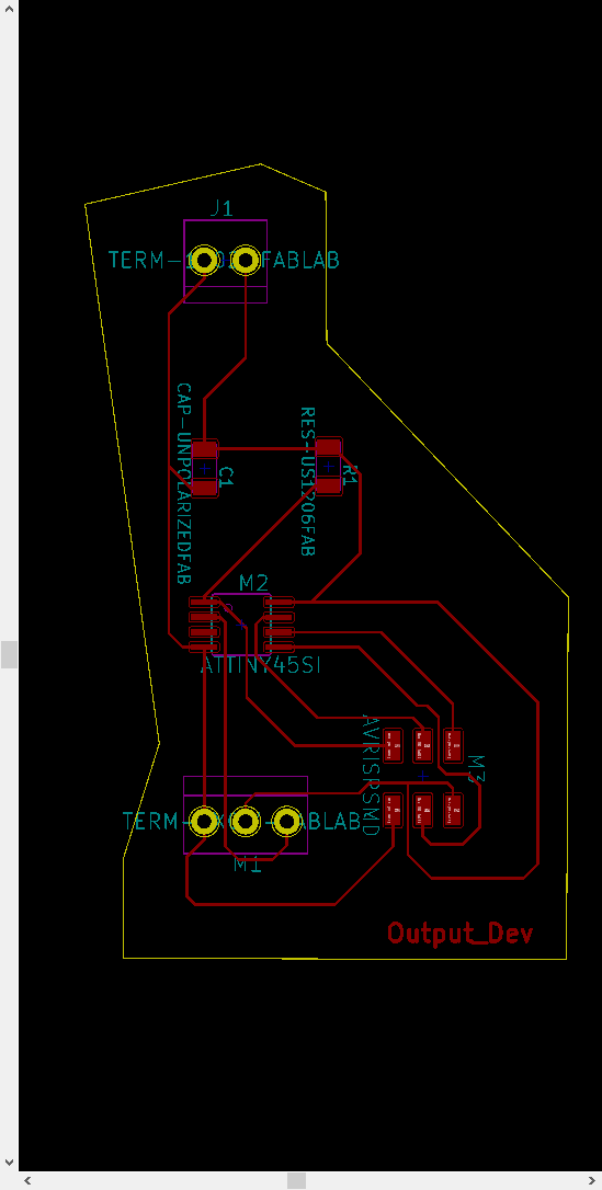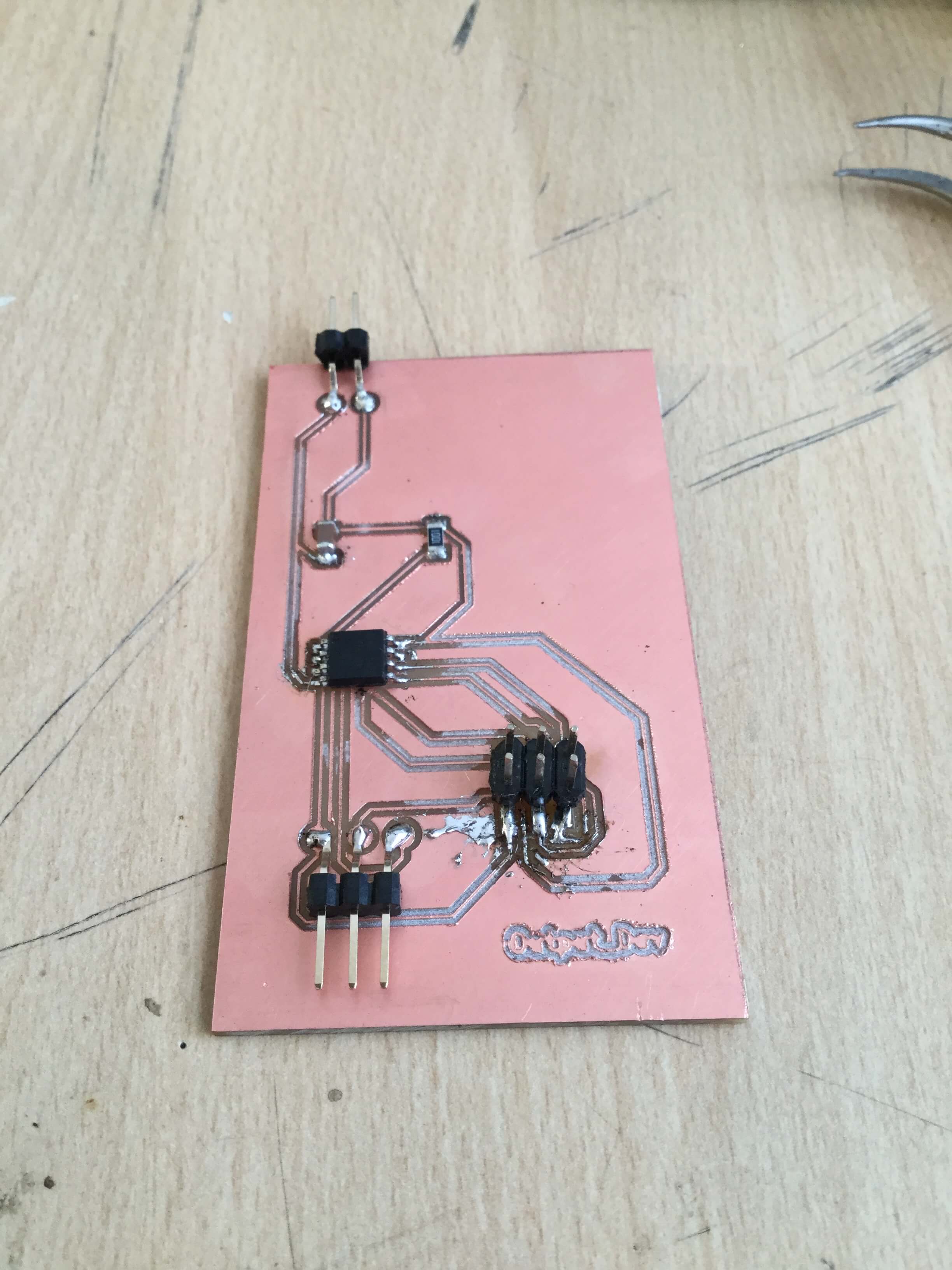 For this week assignment I tryed to control the 5V servo motor Sg 90. For control was use the Attiny 45 microchip, and for design the board the Kicad software.