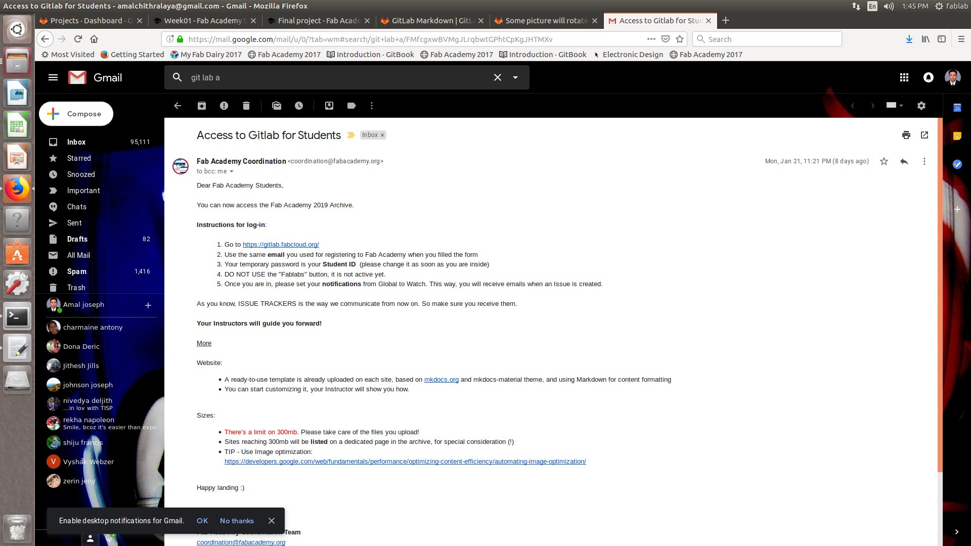 .After receiving the mail,I accessed gitlab through the link and created a gitlab account and accessed to fabcloud.io.