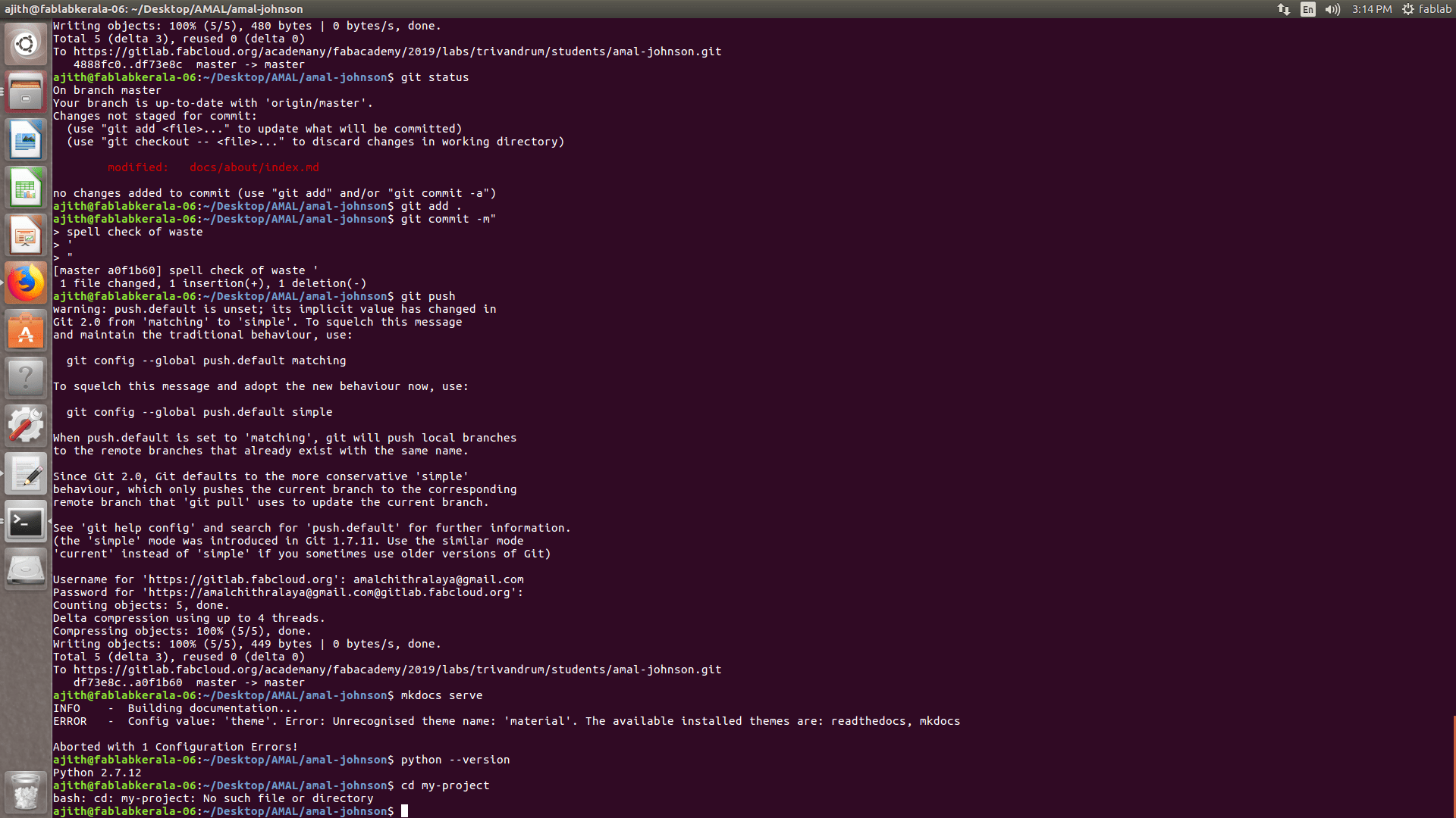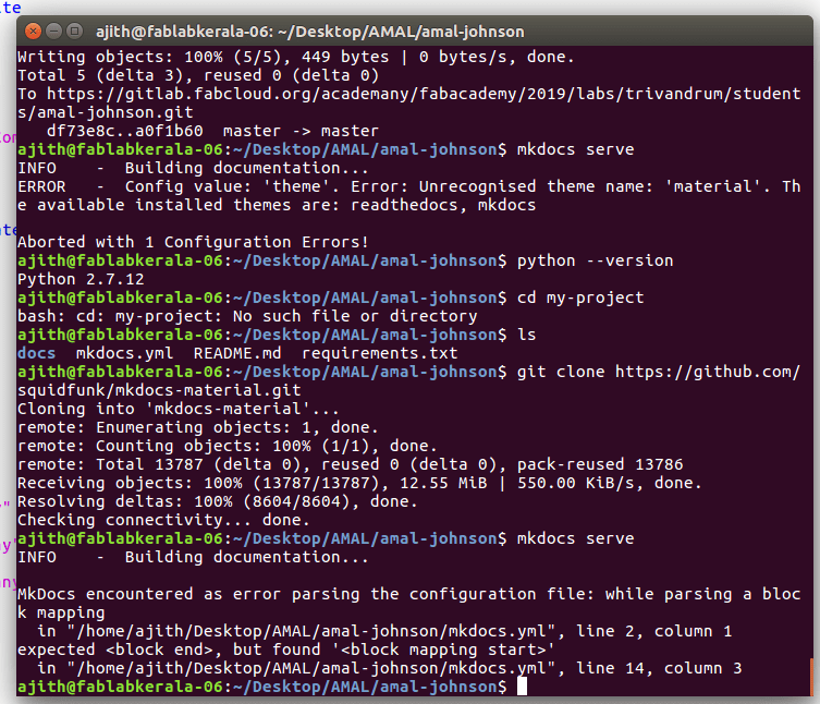 While trying to work on mkdocs I tried to edit the yml file for changing the name and other details the mail came showing that the pipeline has broken and after that
