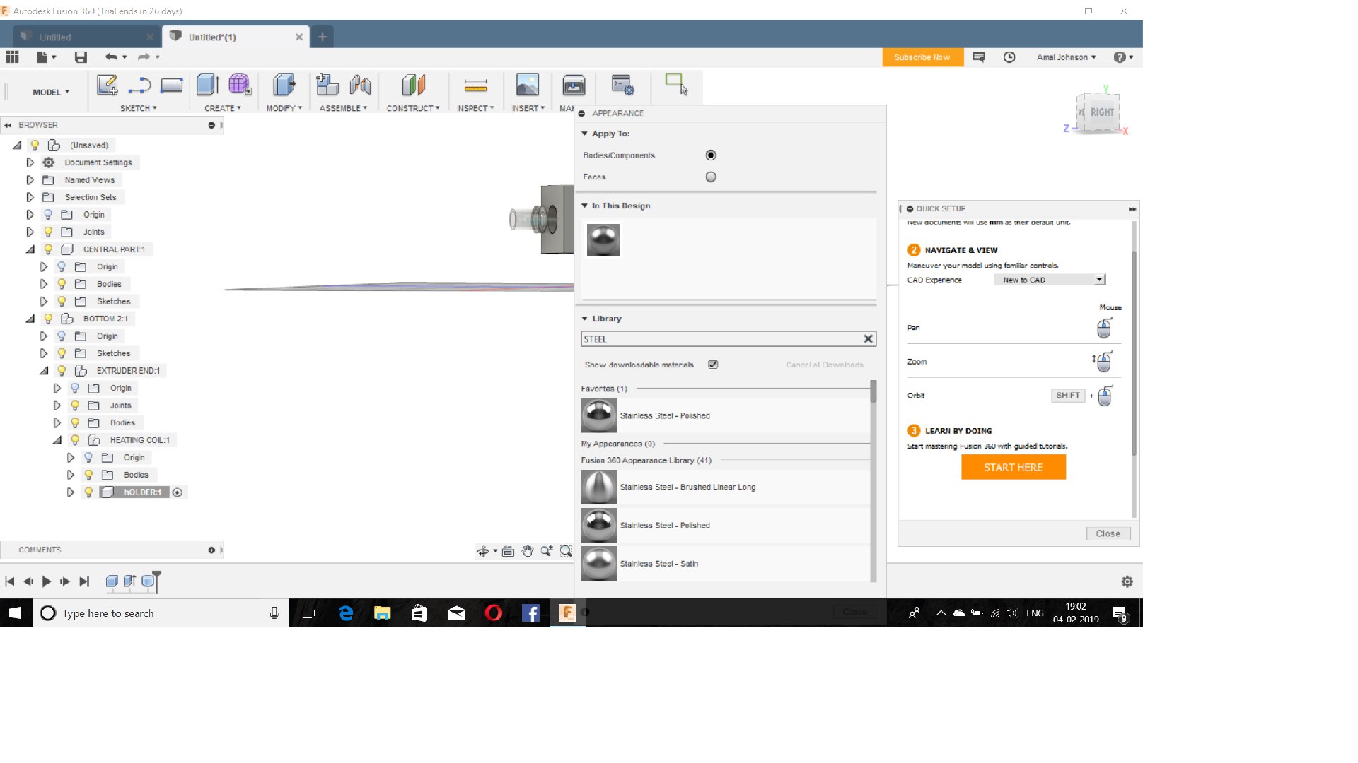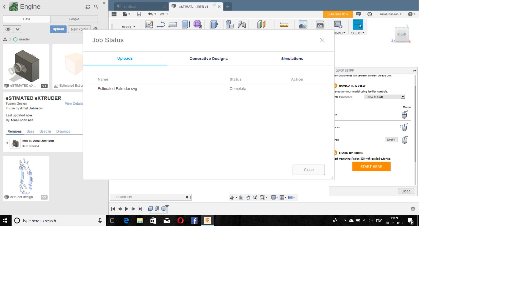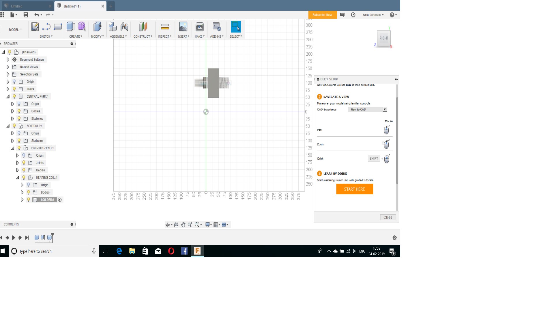 I was using the Fusion 360 for the first time and my intention was to find a way to study this software because it finds interesting and definitely a useful one in future.