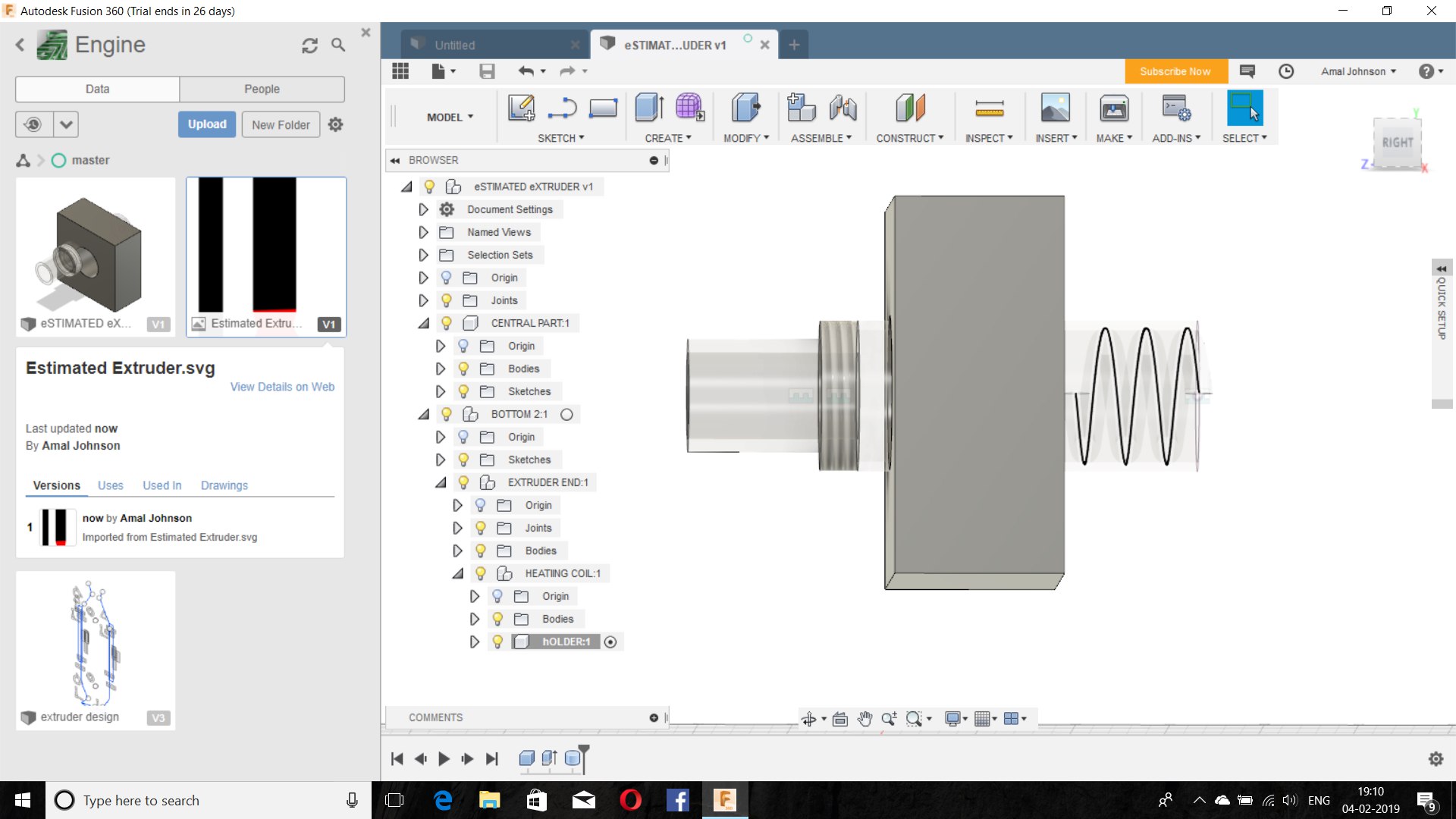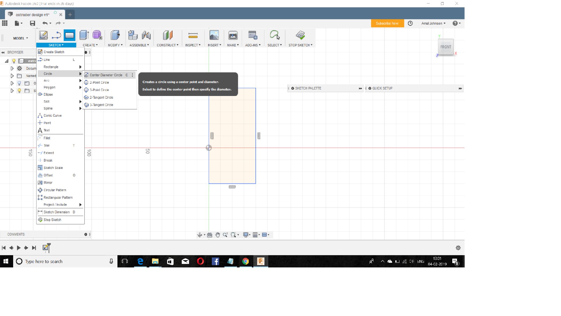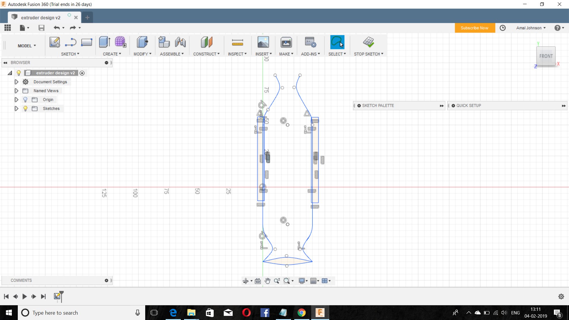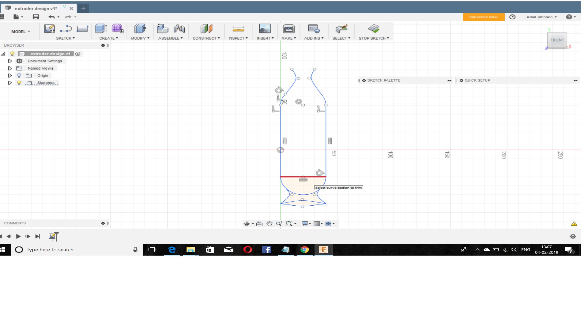 4.Thus the estimation of the extruder was doen in 2D using fusion 360.