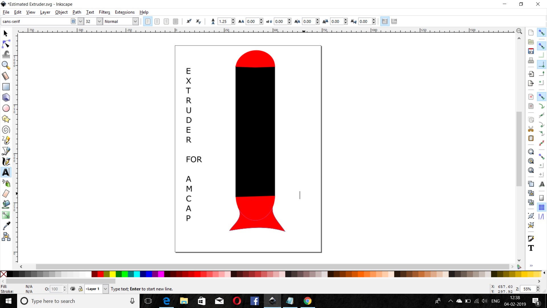- Thus the estimated design for the extruder were drawn in 2D by using Inkscape