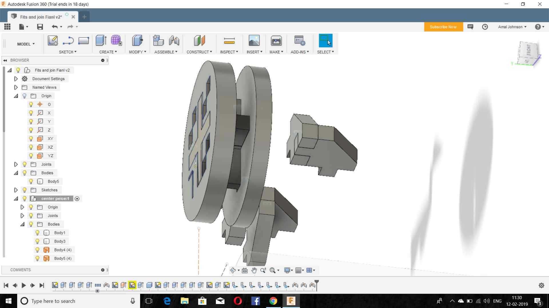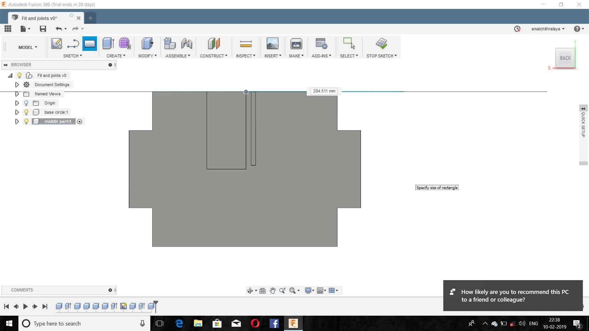 The Created the 10mm Thickness for that and jointed the base circle using assemble->Join option and this was done in order to check the fit consistency.