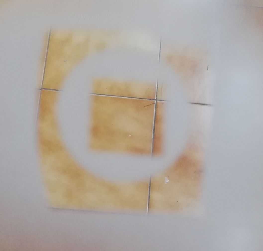9.Then I tried a test figure to imprint on a transparent acrylic using sand blaster by affixing the negative part of the vinyl to it.
