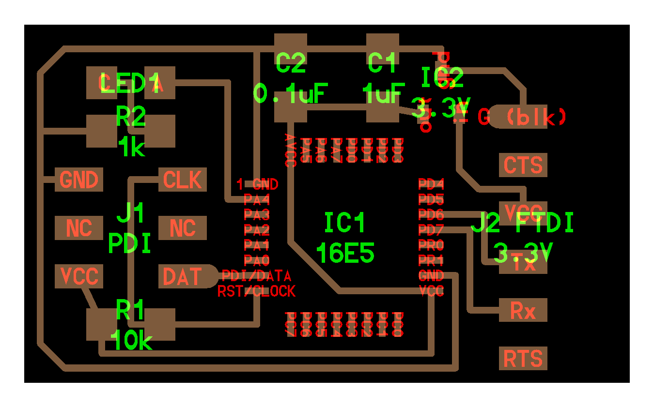 13.But it seems that the selected components went wrong somewhere and I begin to identify the mistake and went back to the Schematic diagram and identified that the connections to FTDI was not properly connected and I did the whole procedure once again. and the estimated redrawn diagram and the png file was set to mill using ROLAND MDX 20.