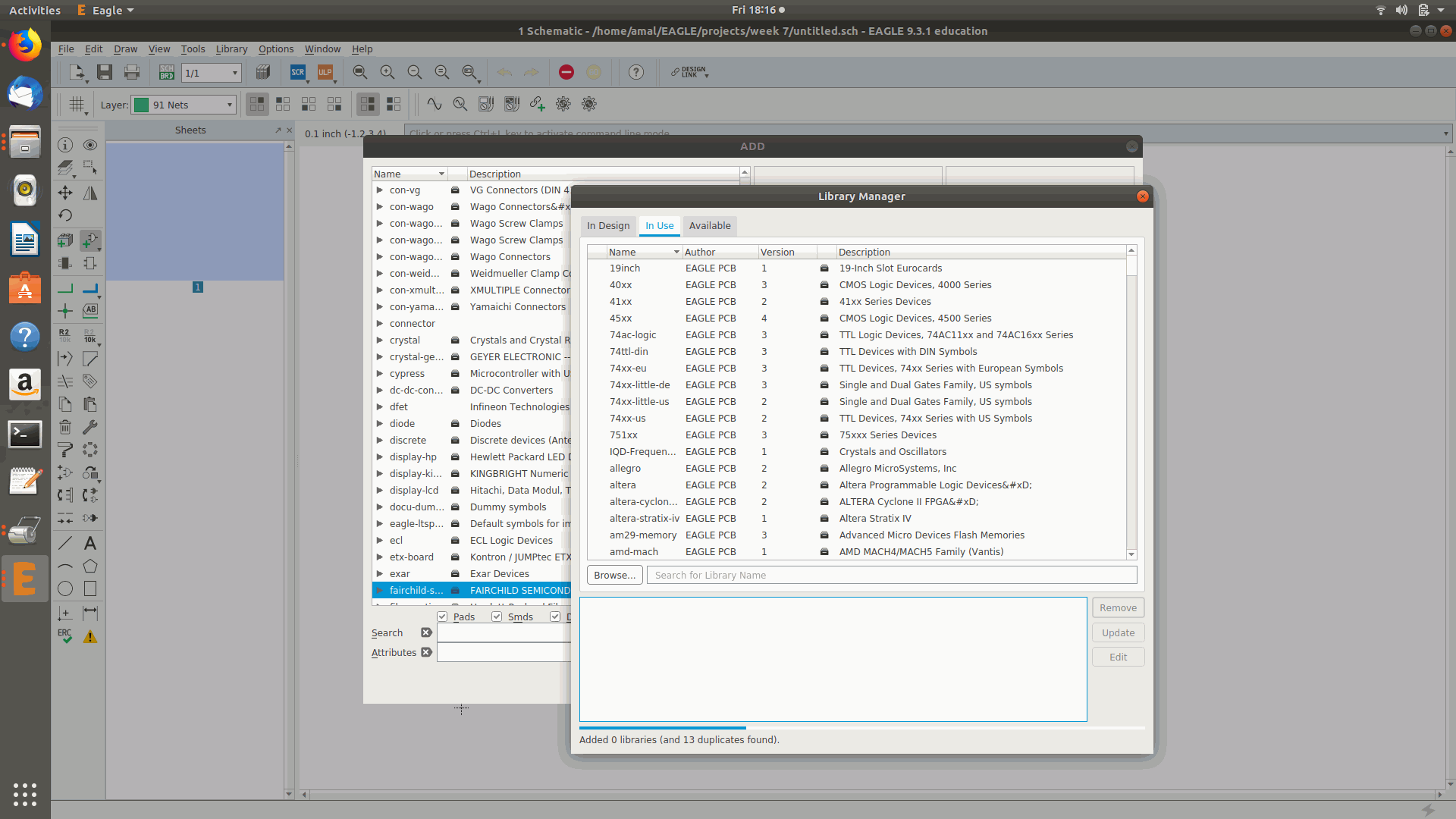 3.Then I installed the Autodesk eagle and downloaded the FAB library from the academy site.