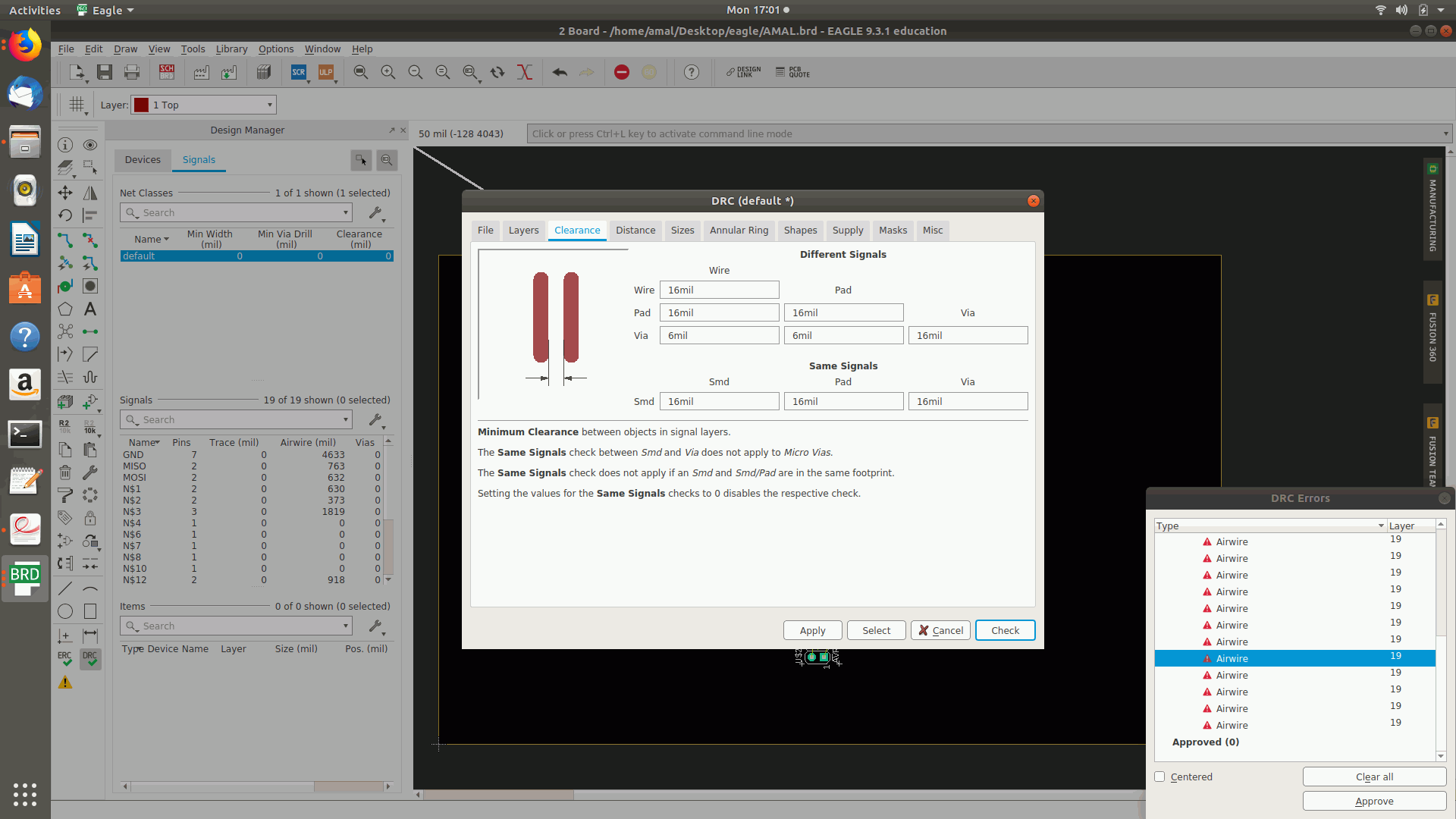 10.Then selected the design rule (DRC) as size as 16 mil and clearance as 16 mil.