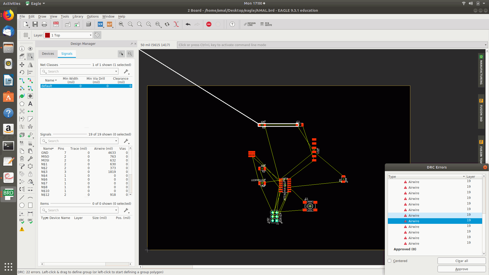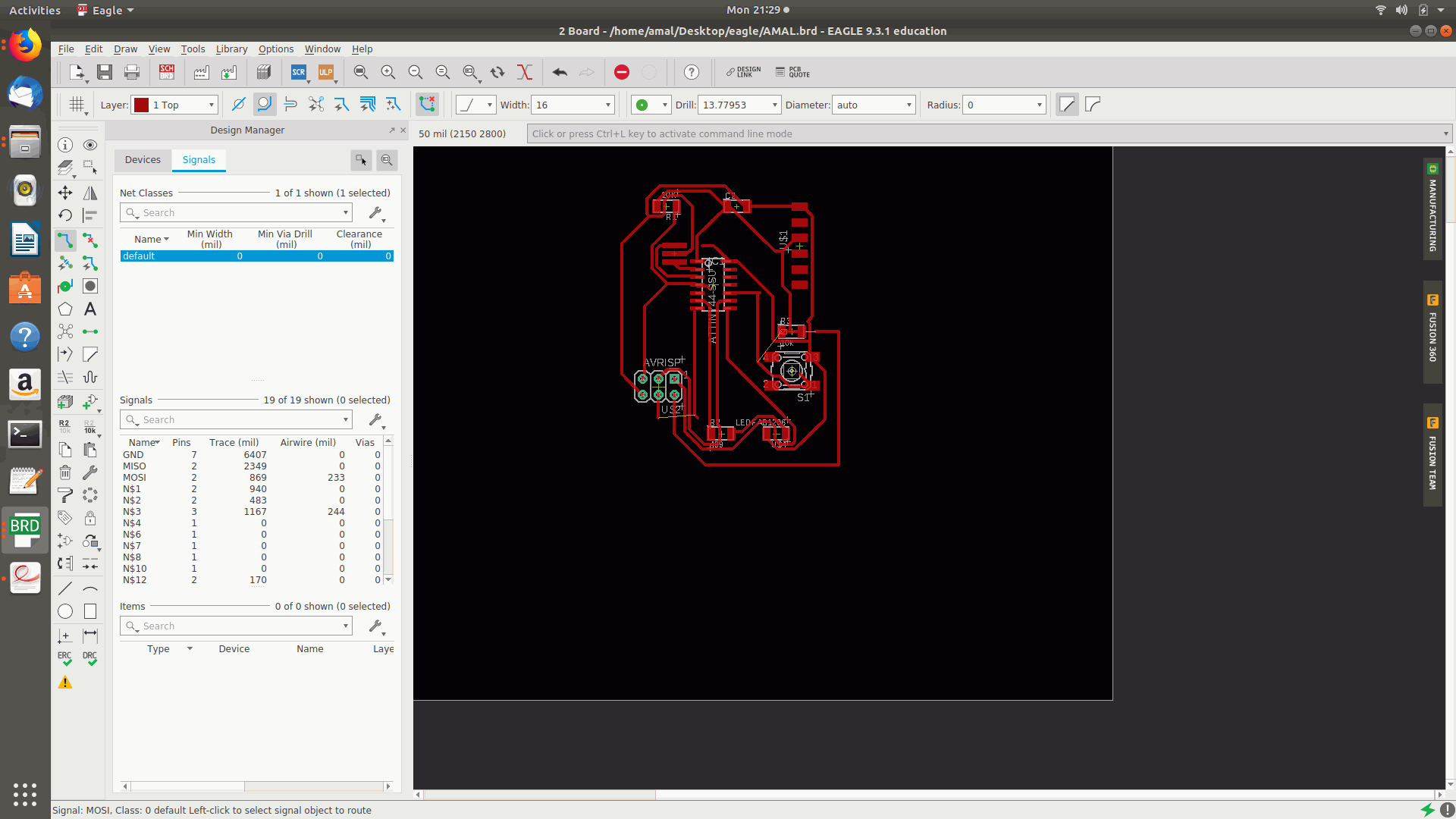 1.The tool selected for the designing process was Autodesk Eagle and this was the very first time I was using it.