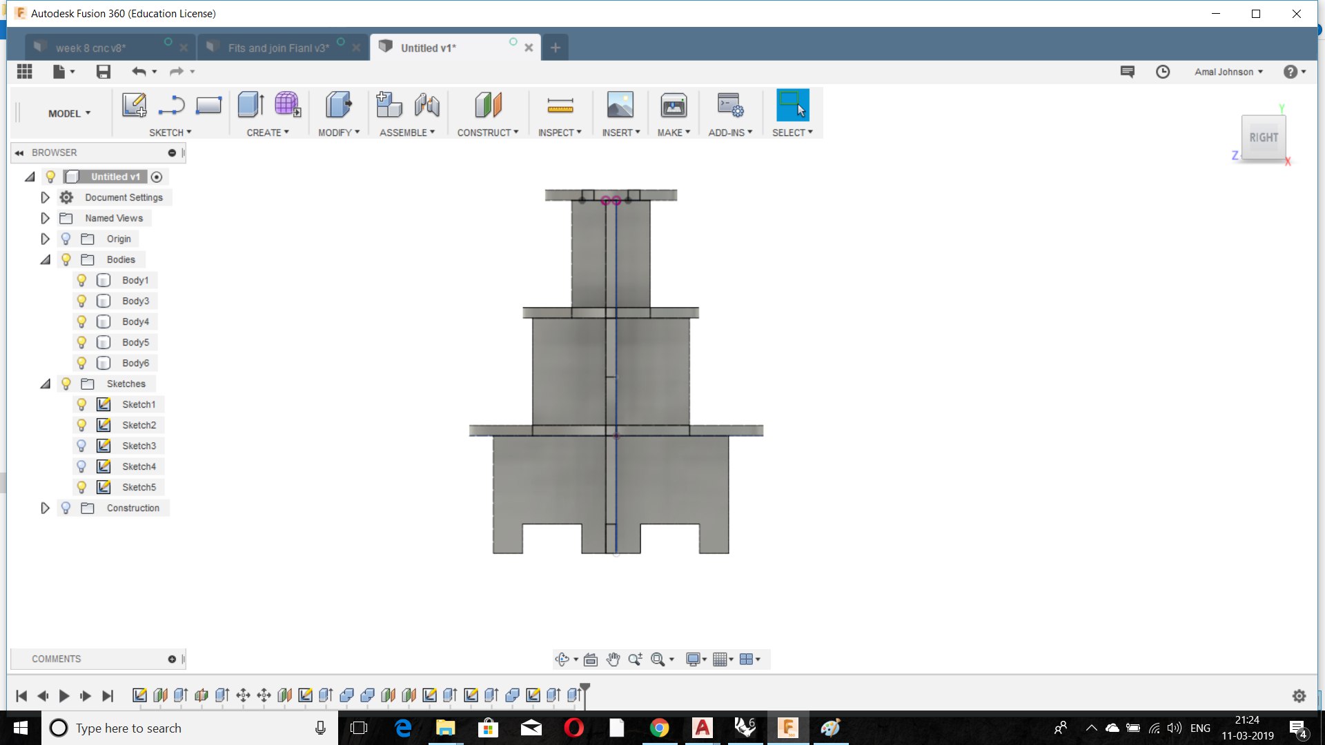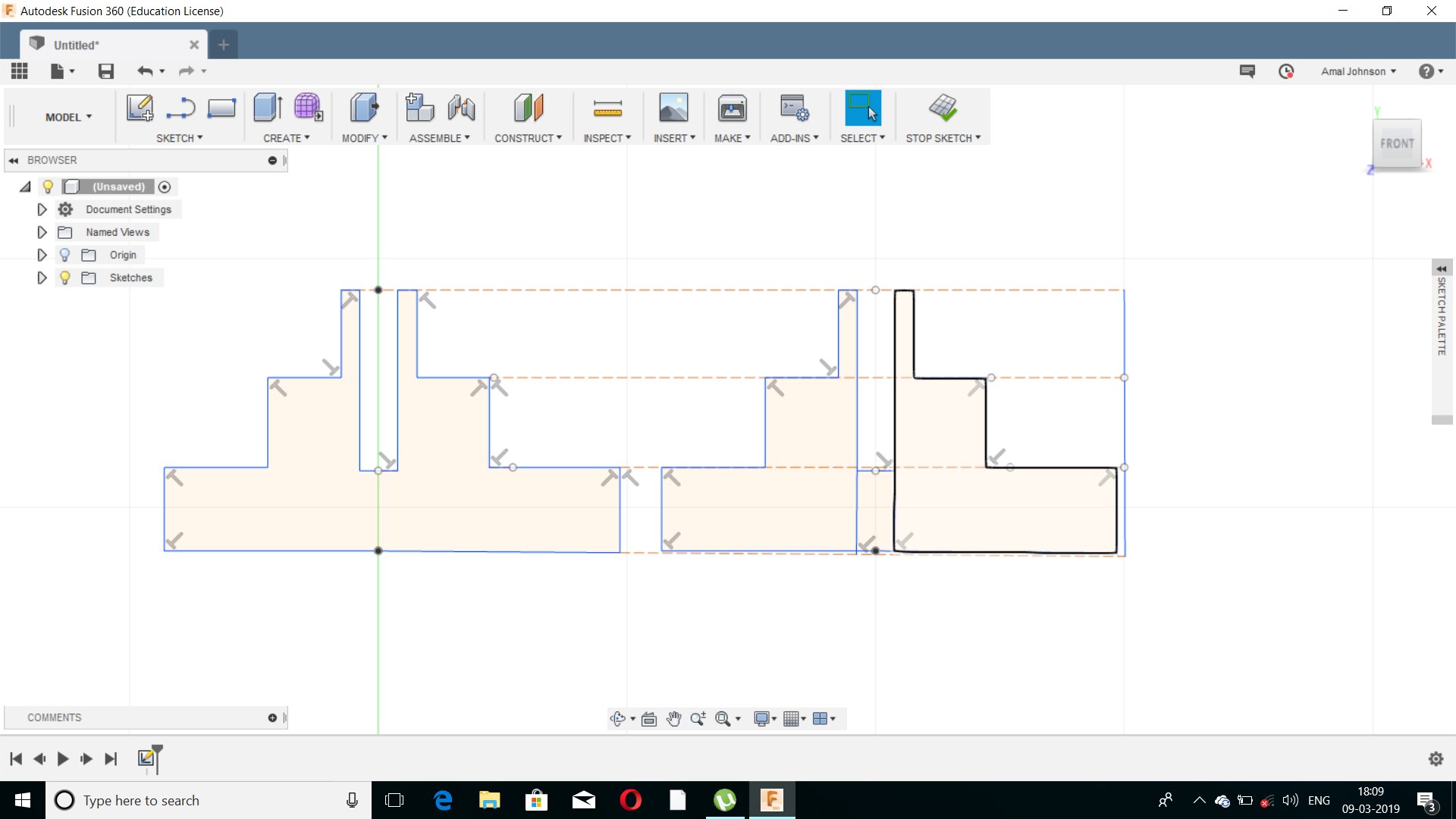 (x)I sketched the estimated design of the bottom part of the shelfa and I extruded it and then I rotated the same sketch and extruded the male part of the fit design.