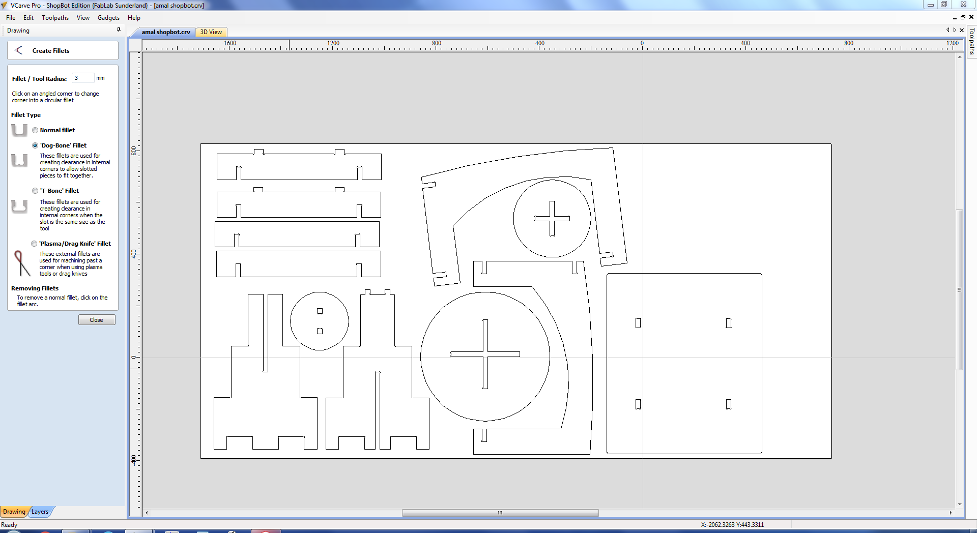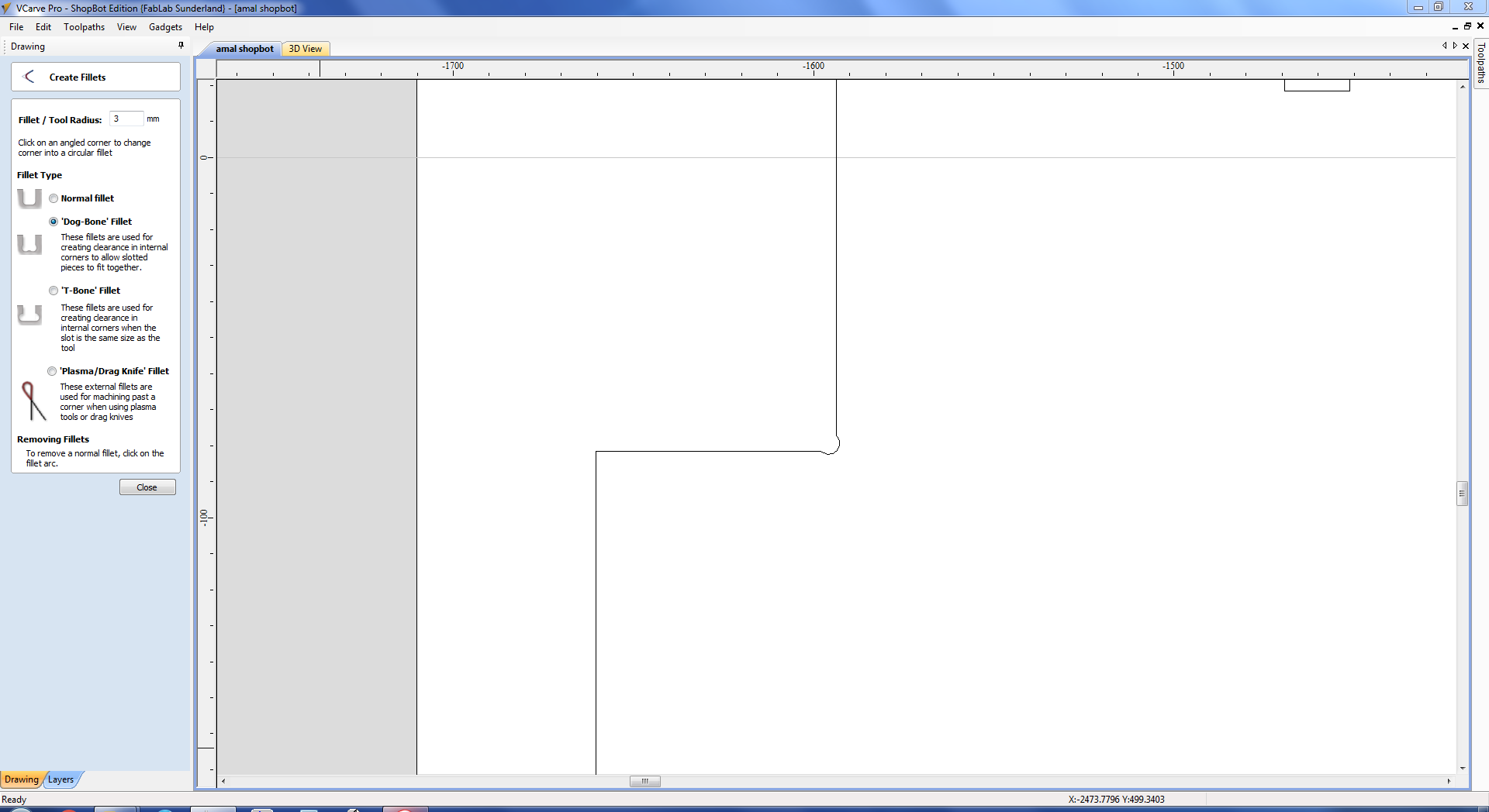 (vx)Then created the dog bone from the profile which is used as cutter compensation and added the tab for holding the material even after the cut.