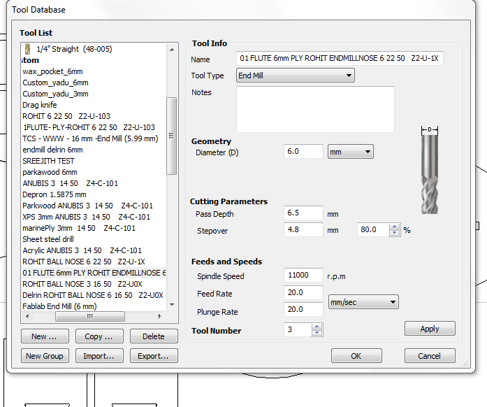 3)The basic diameter of the tool selected was 3mm and 6mm for cutting purpose.