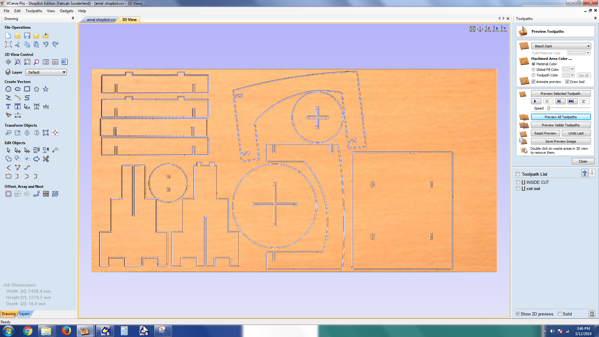 (ivx) Then I arranged the sketches according to the minimum usage of material and the saved and exported to the v carv.