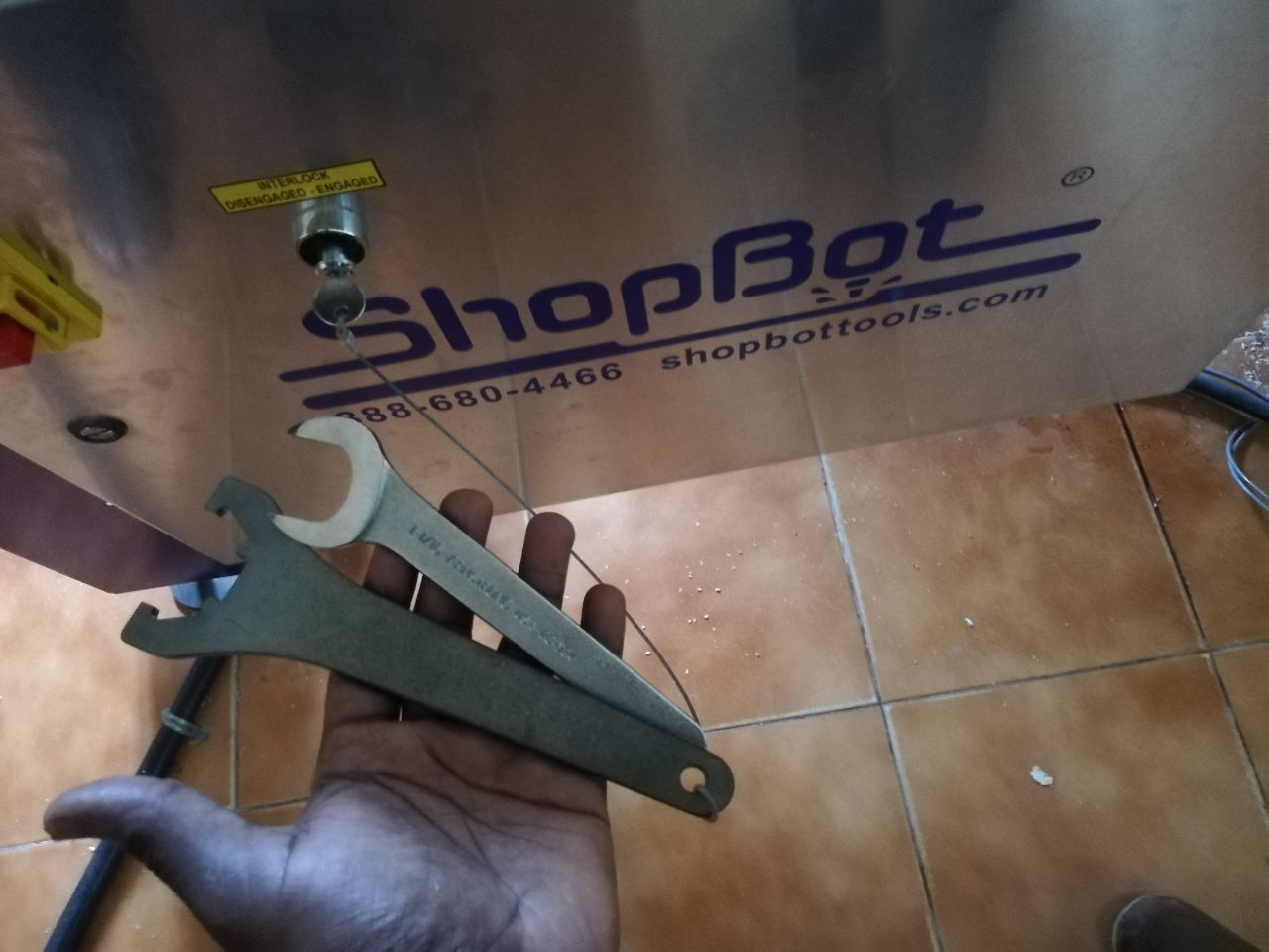4.Then I Fixed the tool bit which was 6mm upcut single flute tool bit and for that i used the spanner kit which was affixed by a key in the shopbot itself.