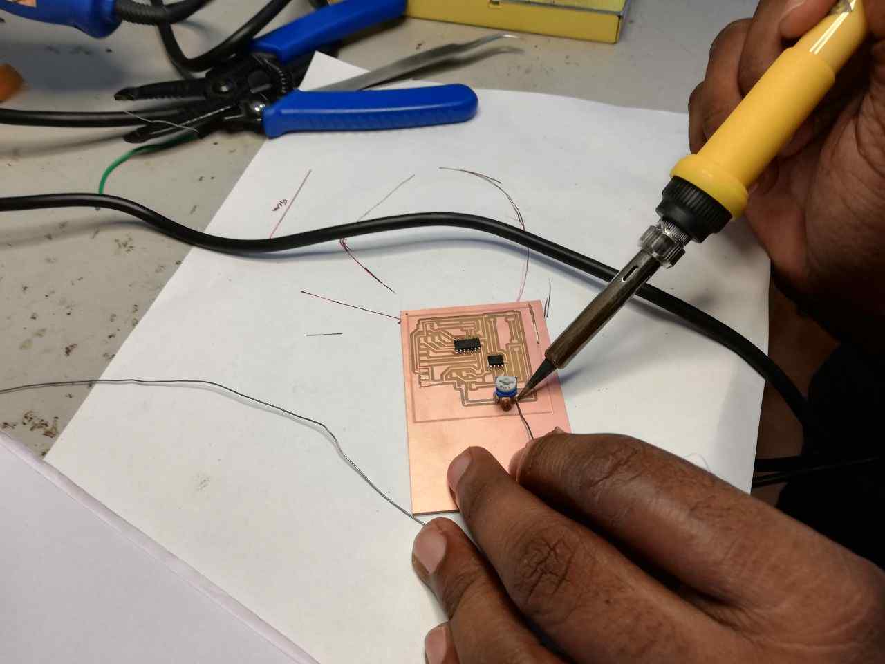 7.The main issuie I faced with while soldering was to fix the IR LED and Photodiode and POT resistor was fo fit leg to the pads.