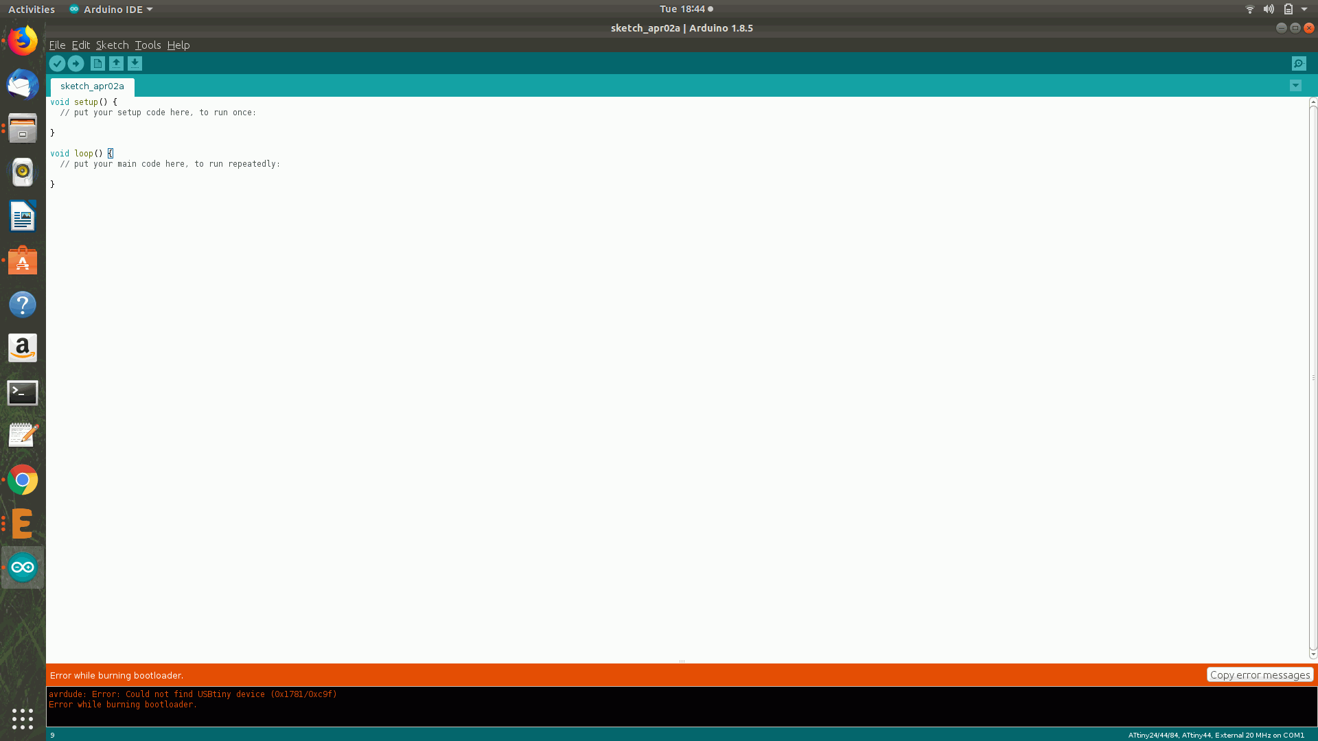 9.For that I selected the ATTINY 44,AVIRSp, etc for burning the boot loader