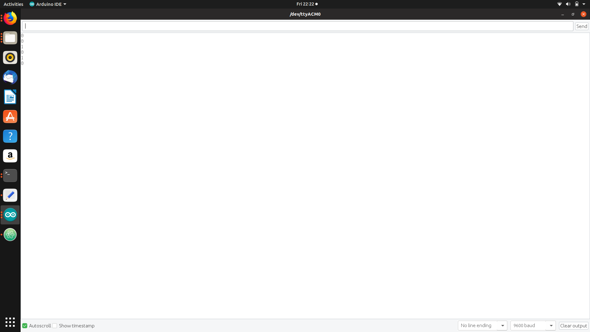 The serial output was shown as 1 and 0.If the PIR detects any human presence,then the value shown will be “1” and if not the value will be “0”.