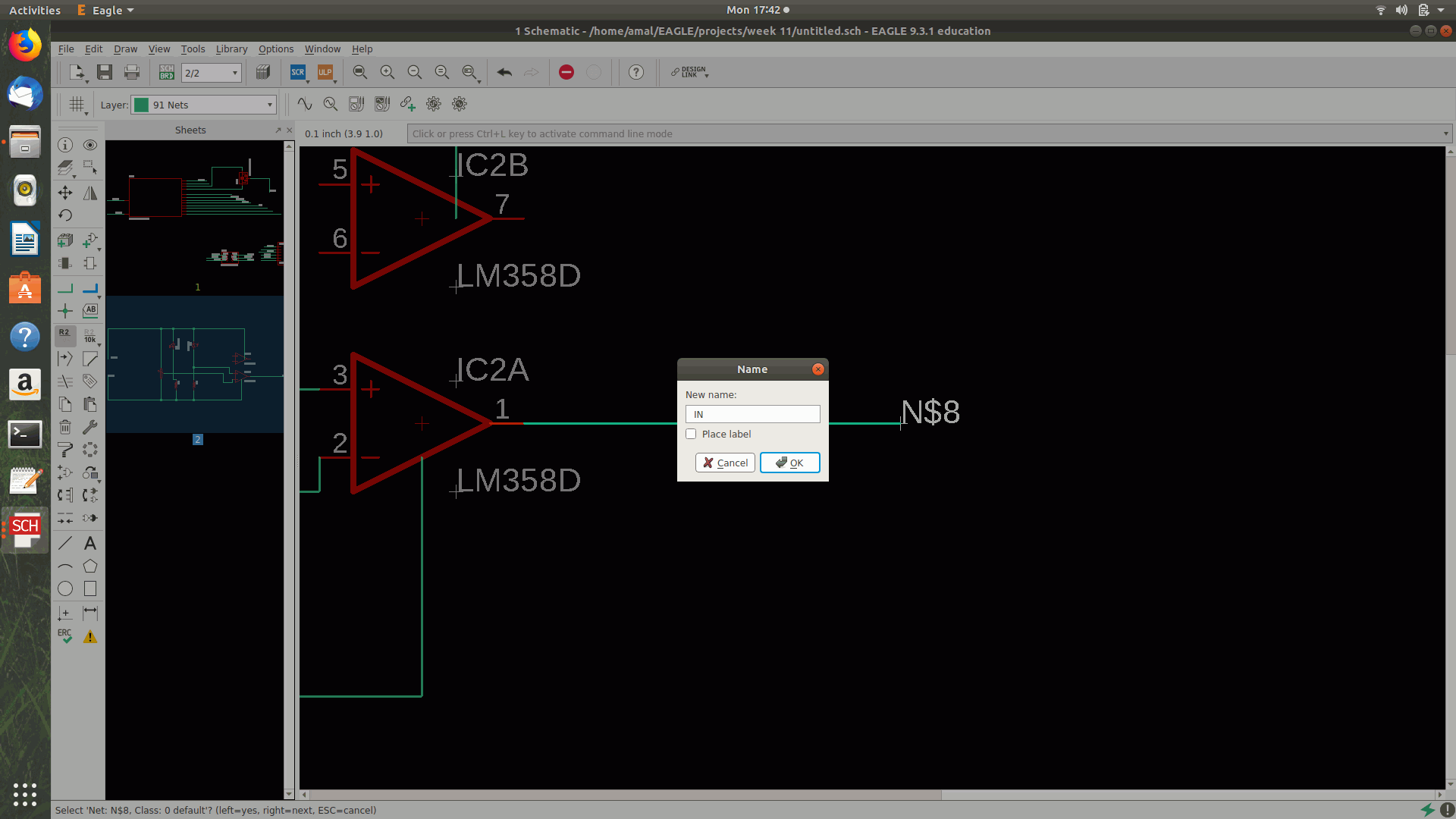 3.Then COnnected the IN pin and by that I Connected the circuits between the 1st sheet and the second sheet by making an IN pin