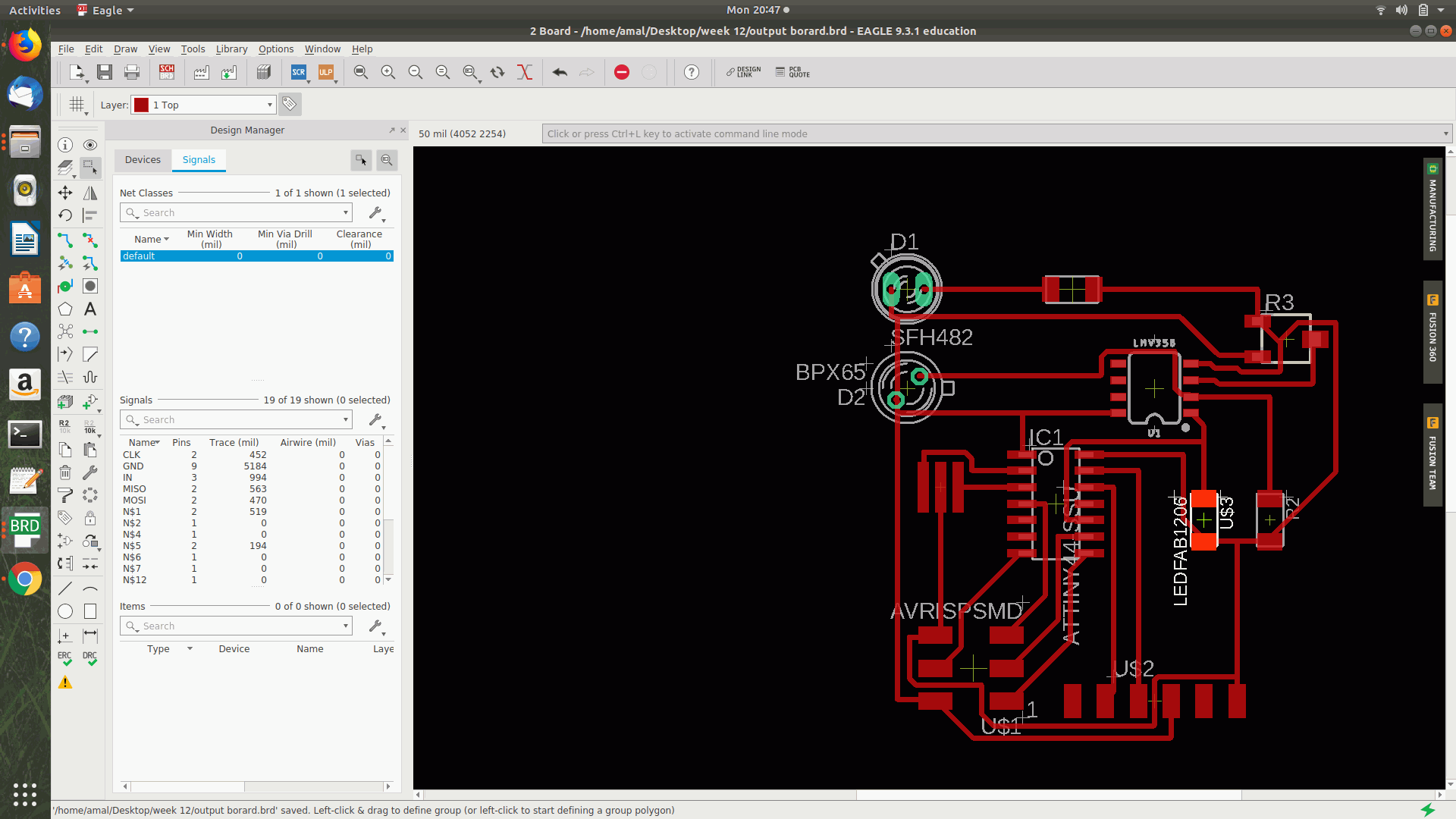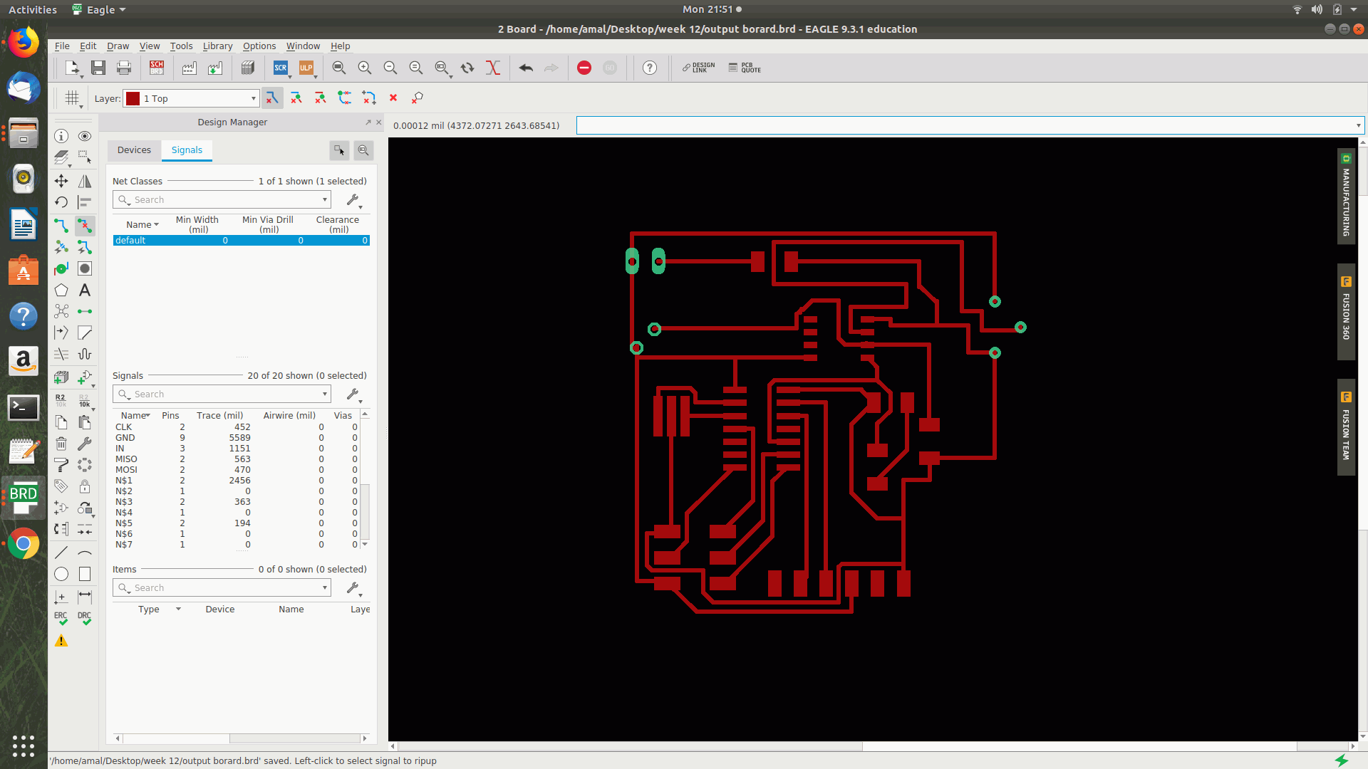After Completing the routing I saved the file into png format and milled the board by using the MDX 20 milling machine