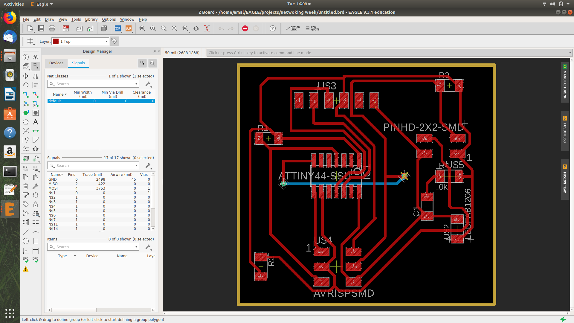 For that I primarly deisgned a board using Autodesk Eagle using the following components
