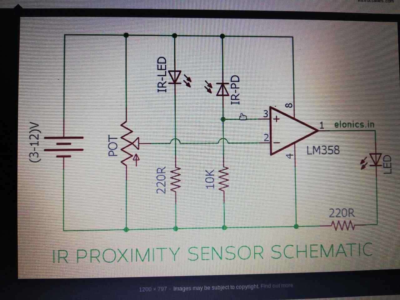 For that I referred through various circuits available in the internet and estimated to do a simple proximity circuit with photodiode and IR led with LM358RC.