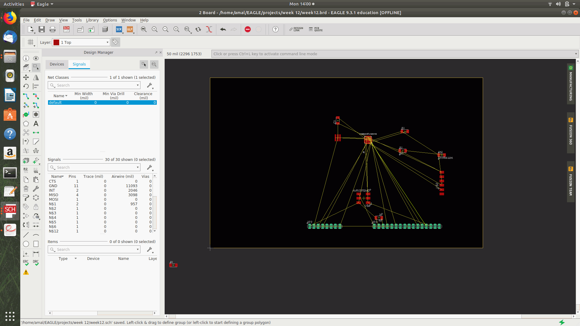 After estimating the circuit in AUTODESK EAGLE I routed it with the experince got from previous weeks.