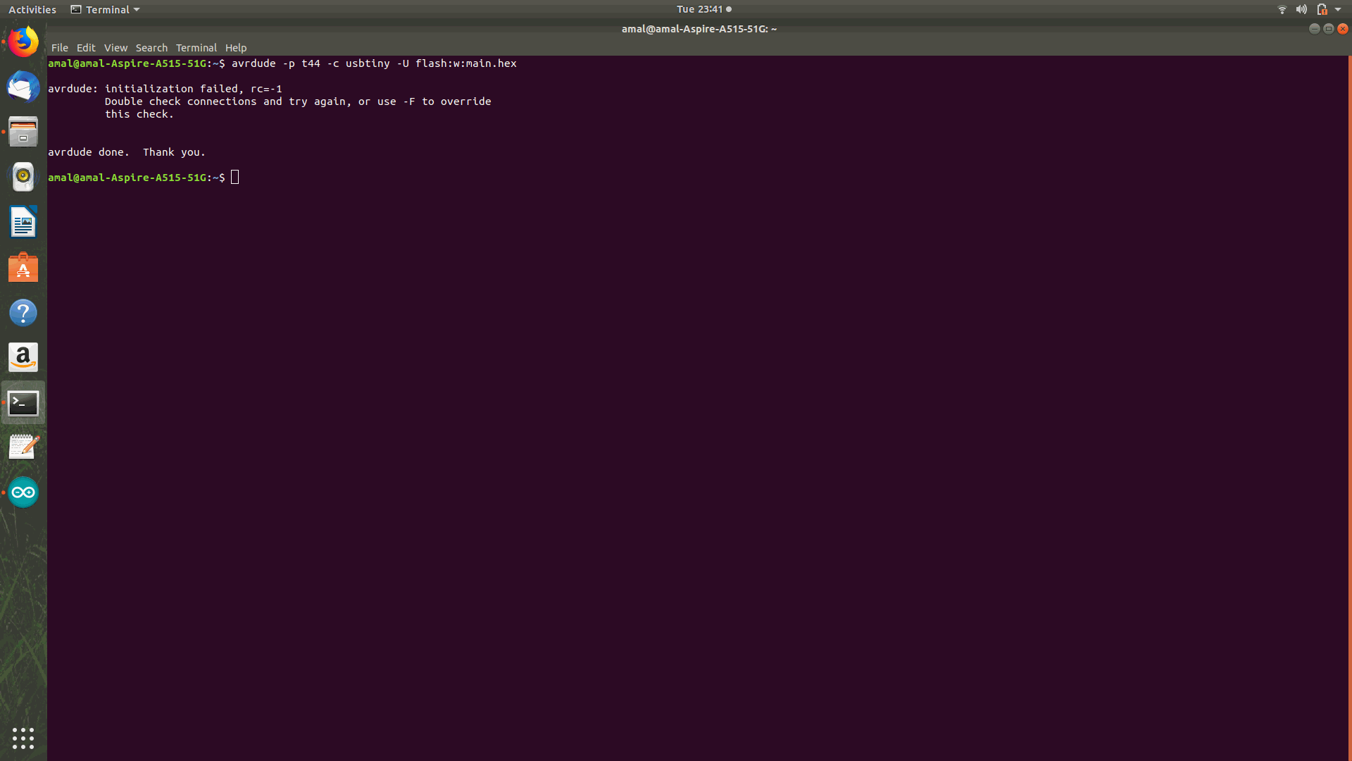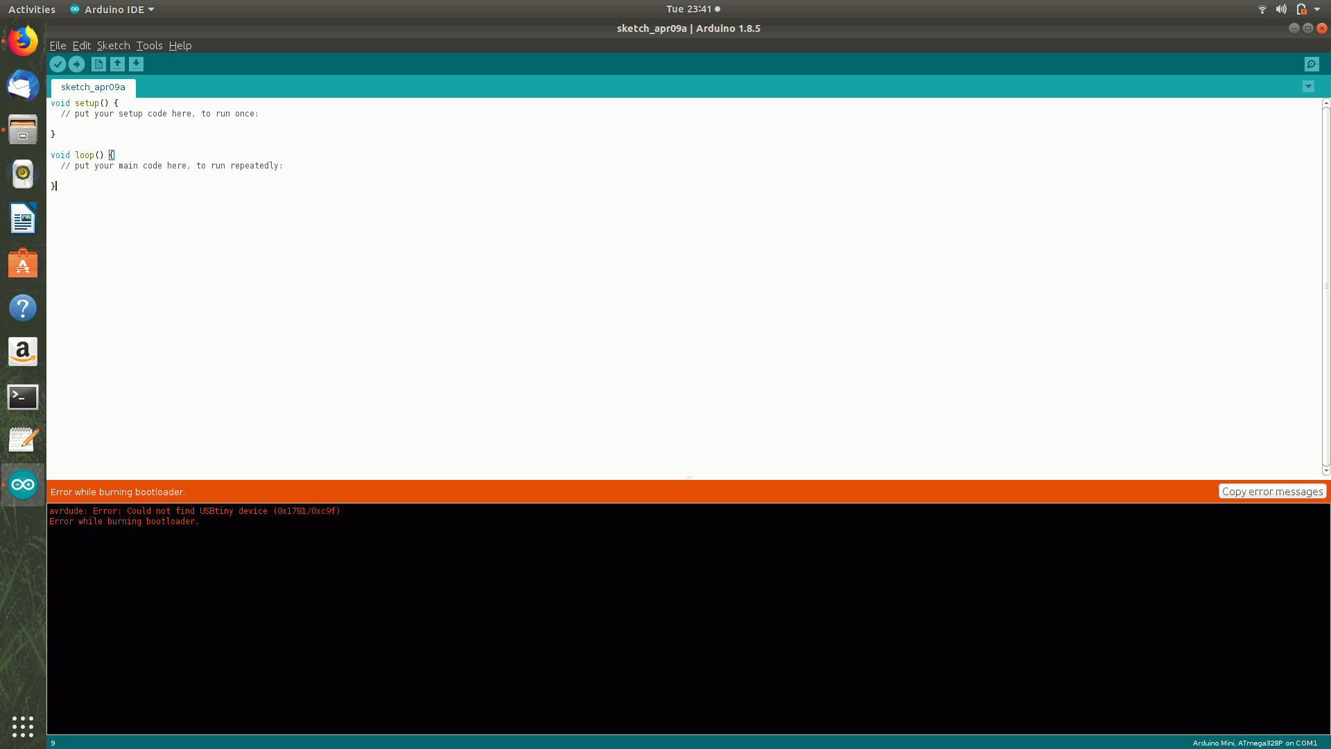 Then the error was shown and missing of USBTINY