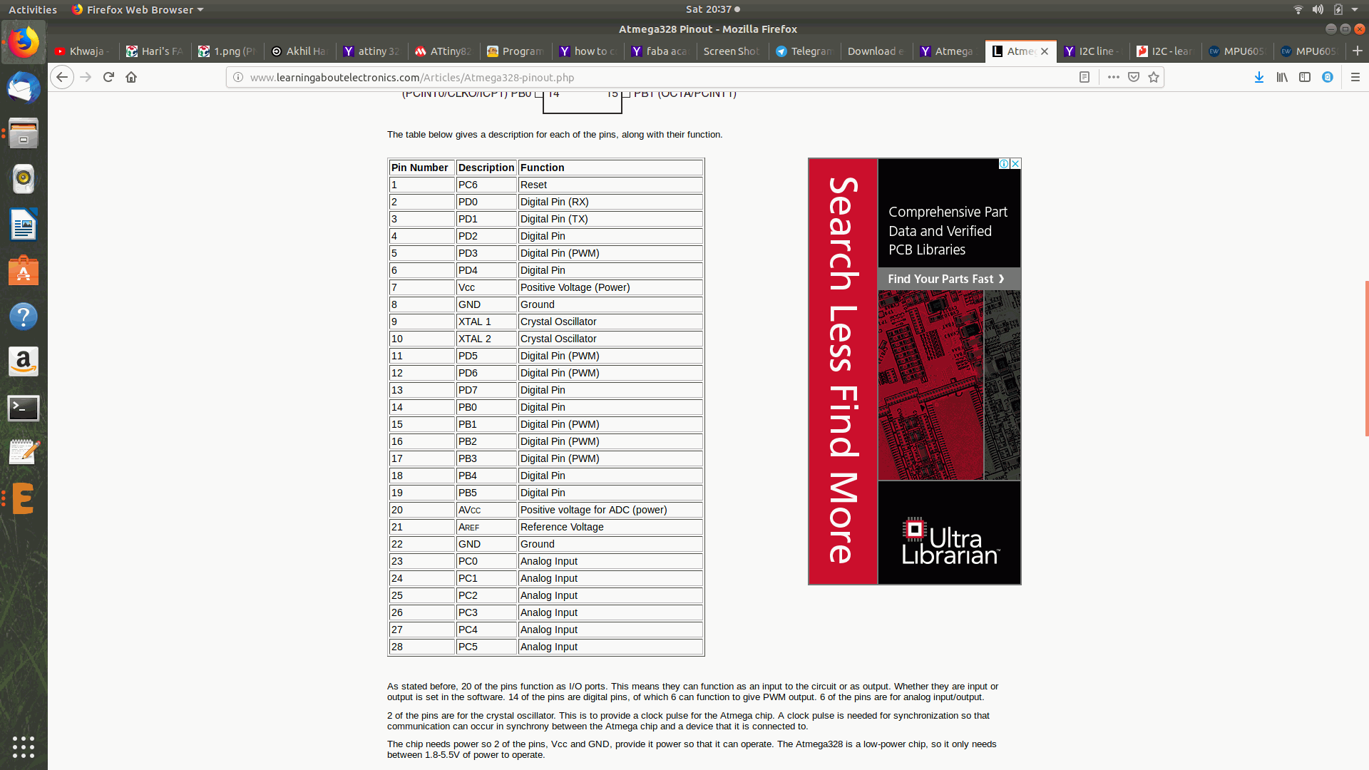 Then I went through the data sheet and studied the functions and pin out of ATMEGA328P.